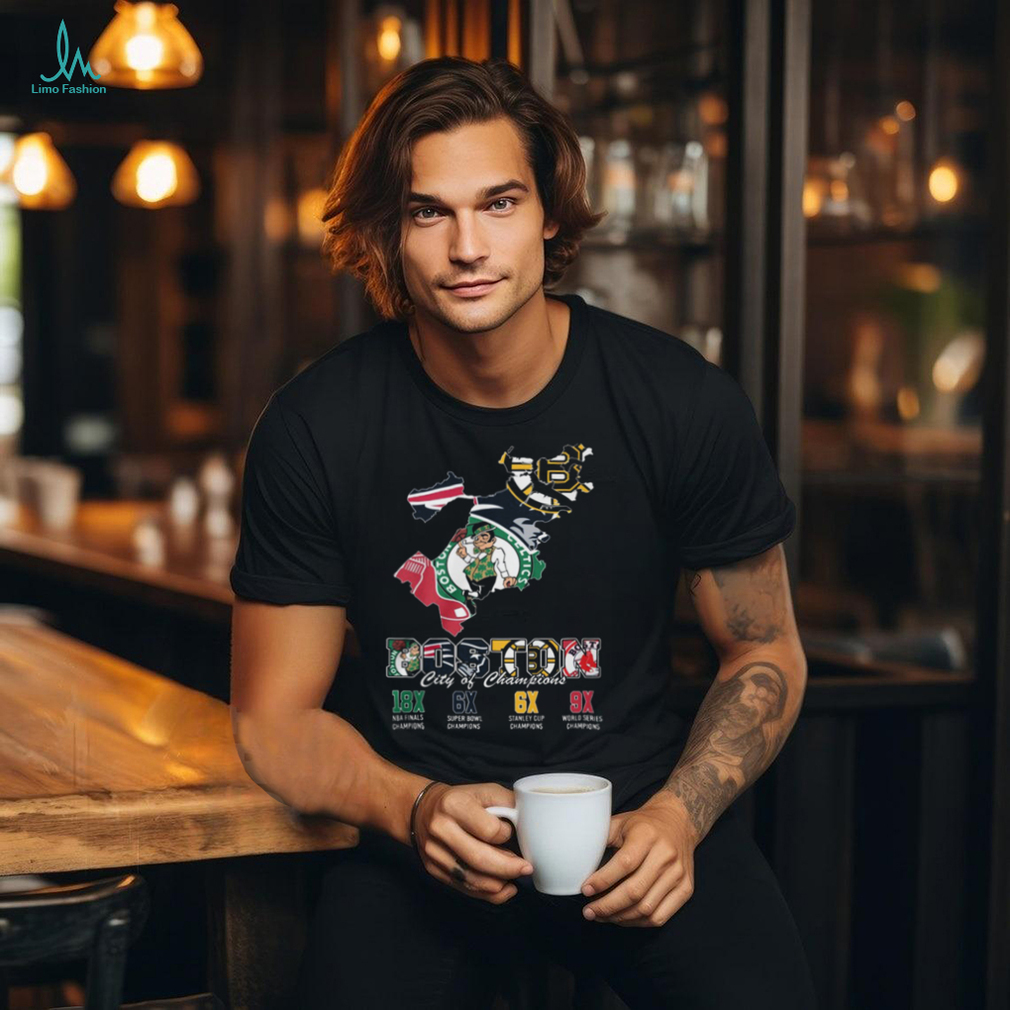 Boston City Sport Champions 18 NBA 6 Super Bowl 6 Stanley Cup 9 World Series T Shirt