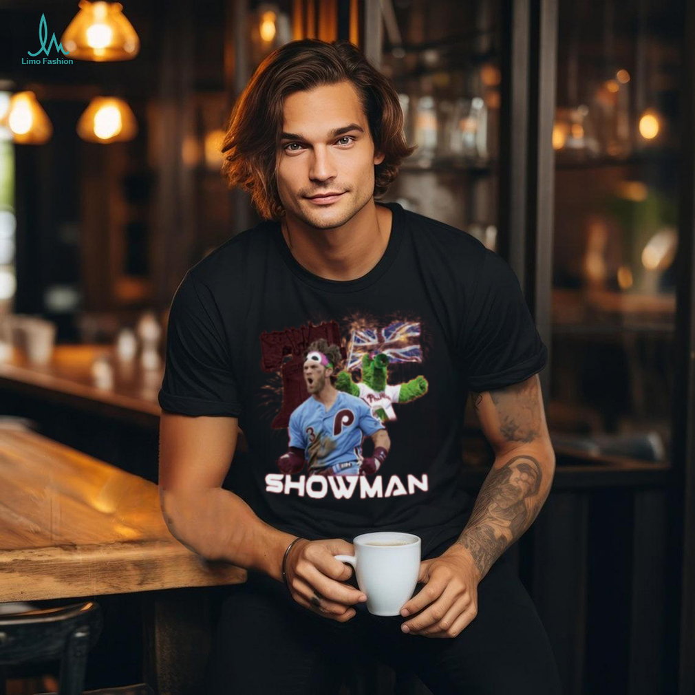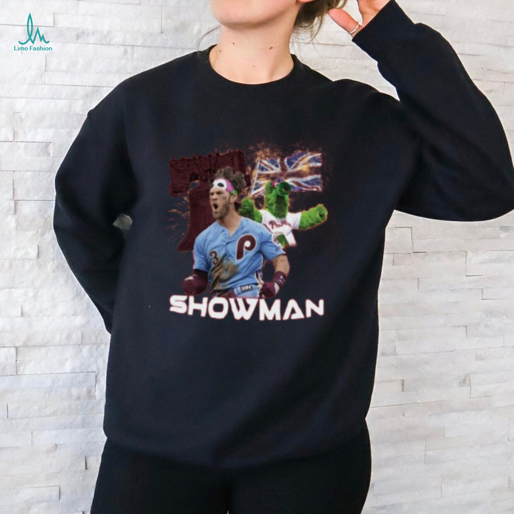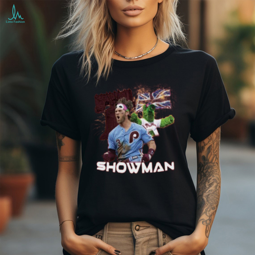 However, Amber has never been a really Bryce Harper London Showman Shirt cat. While my boyfriend’s cat immediately attacked the virtual fishes and insects with fervor, Amber just stared at the screen blankly…she does make some taps once or twice but she didn’t have any interest in it, just sitting and following the motions with her eyes.