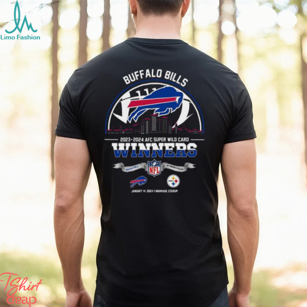 Buffalo Bills 2023 2024 AFC Super Wild Card Winners Skyline NFL Playoffs Divisional January 14 2024 At Highmark Stadium T Shirt hoodie, tank top, sweater and long sleeve t-shirt