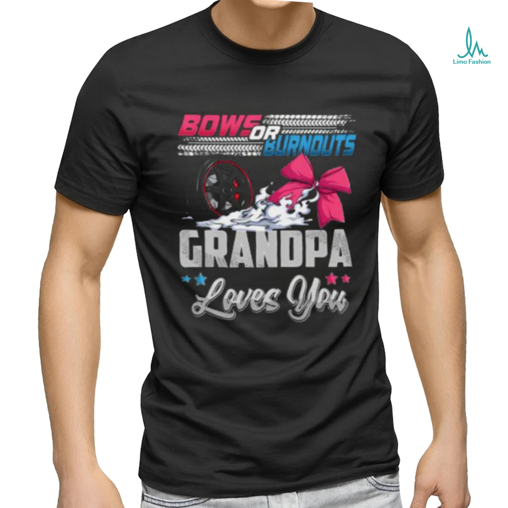 Burnouts Or Bows Gender Reveal Party Announcement Grandpa T shirt, Hoodie, Sweater, Vneck, Unisex and T-shirt