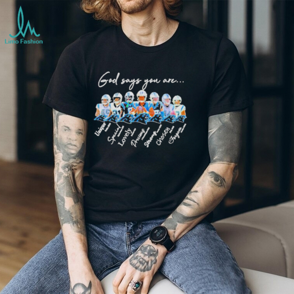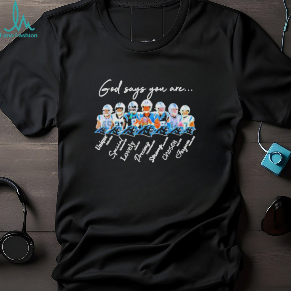 Best Carolina Panthers God Says You Are Unique Special Lovely Precious Strong Chosen Forgiven Shirt
