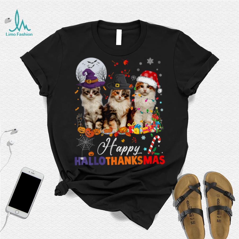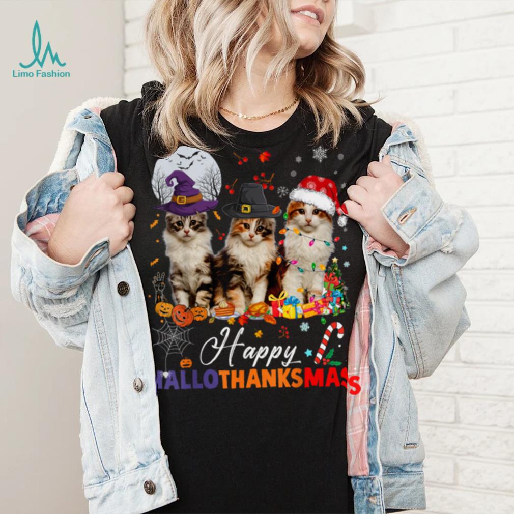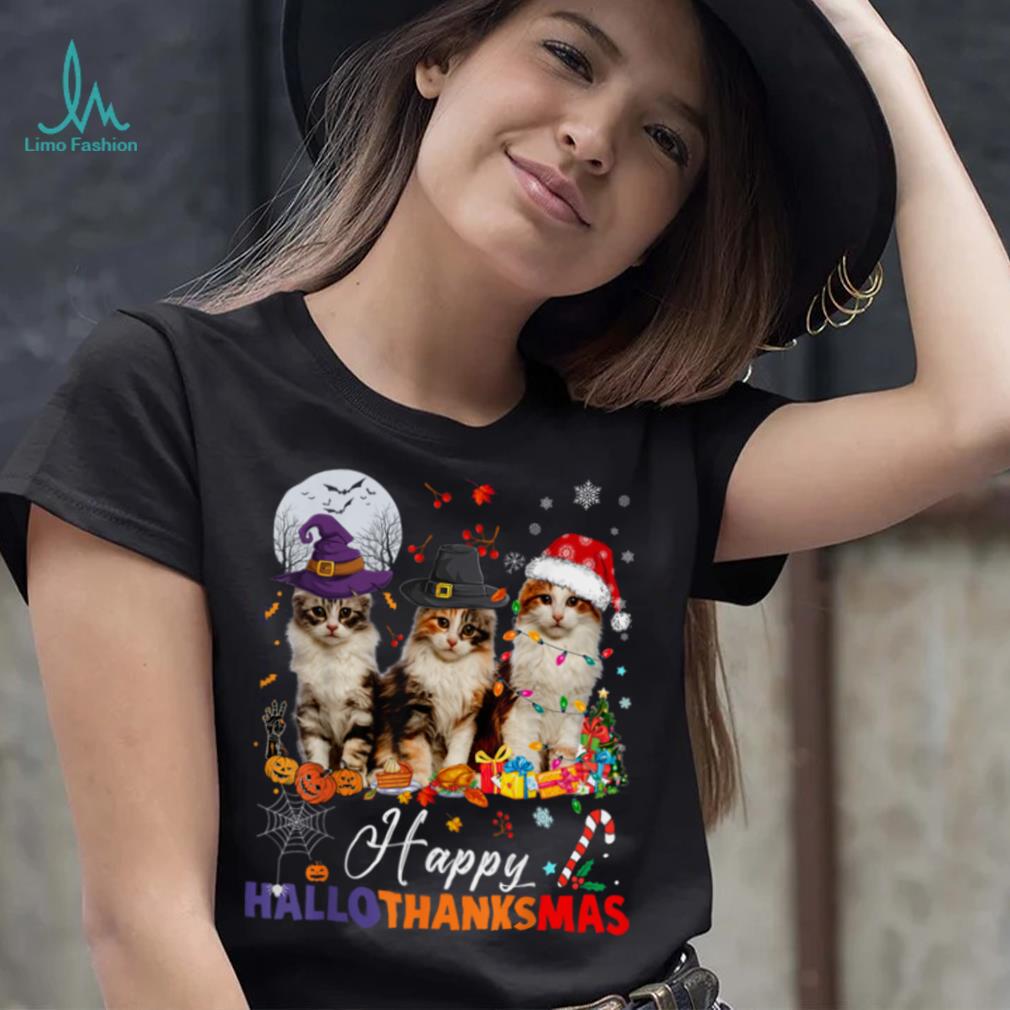 Cat Halloween Christmas Happy Hallothanksmas Thanksgiving T Shirt