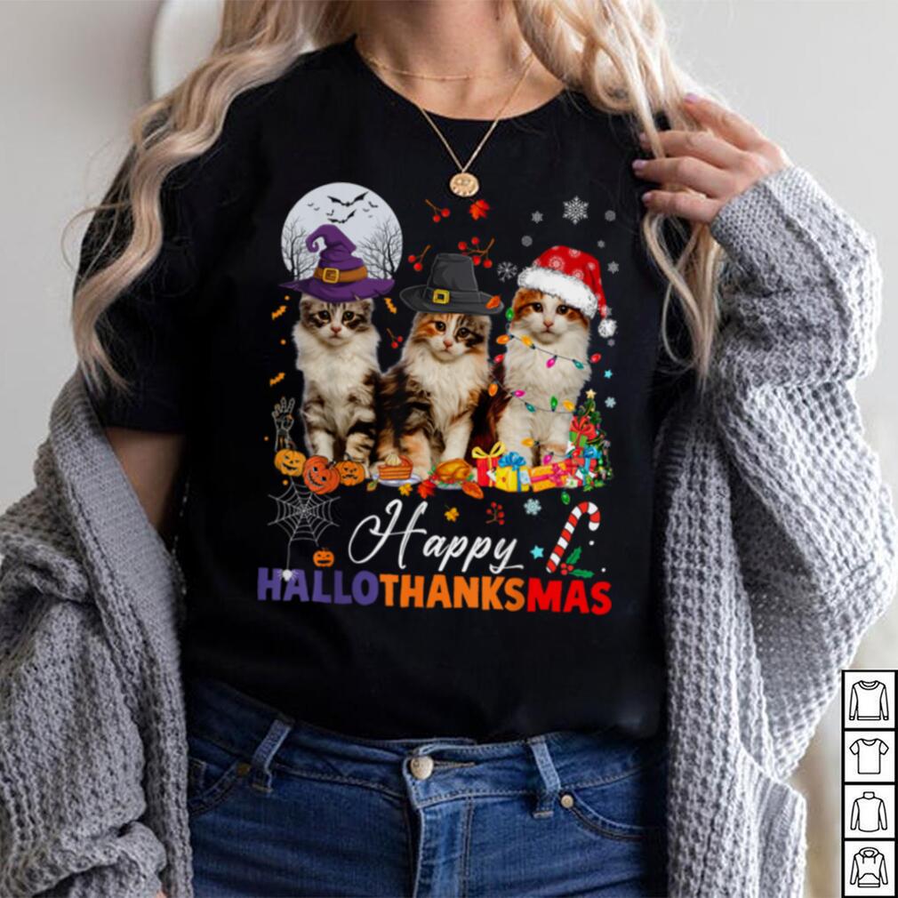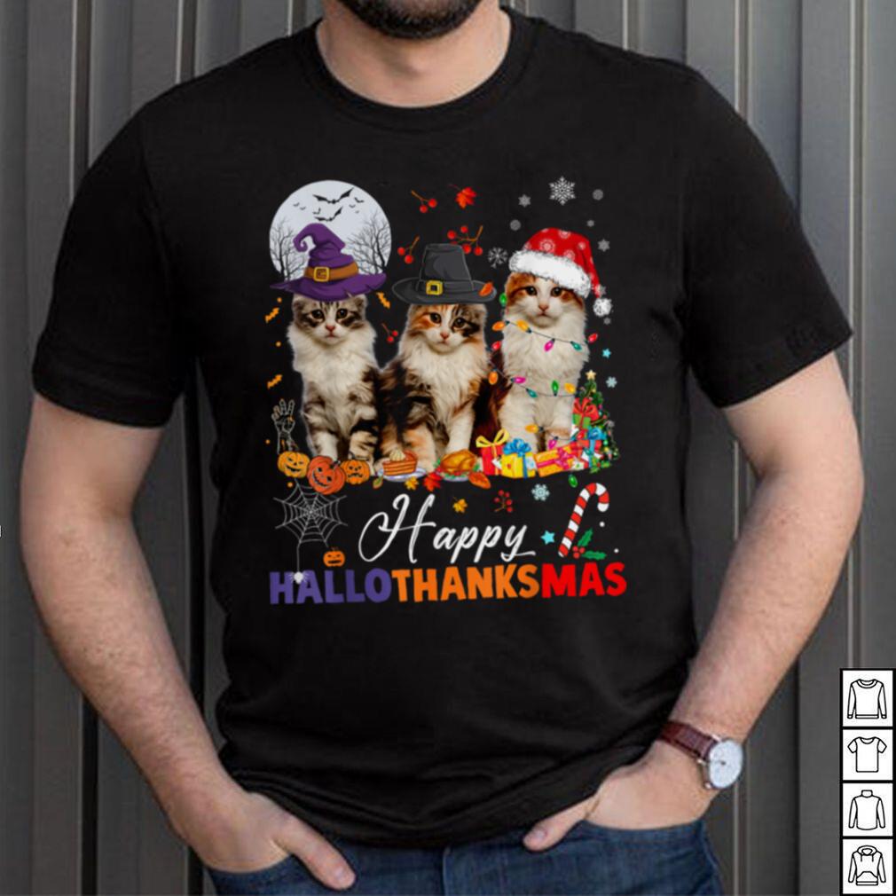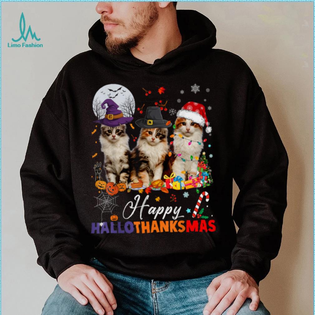 Cat Halloween Christmas Happy Hallothanksmas Thanksgiving T Shirt