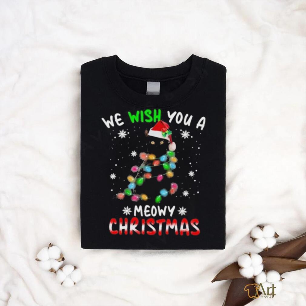 ()Cat hat santa we wish you a meowy christmas shirt, Hoodie, Sweater, Vneck, Unisex and T-shirt