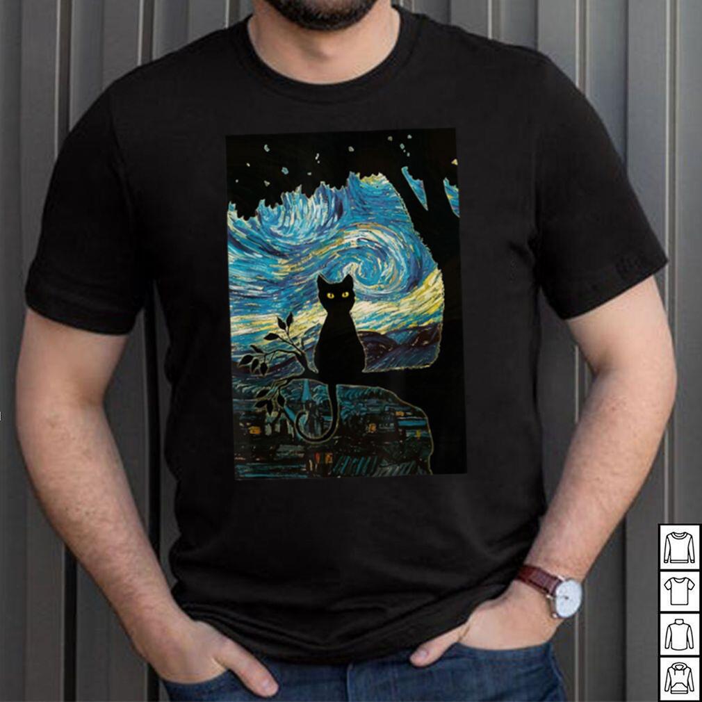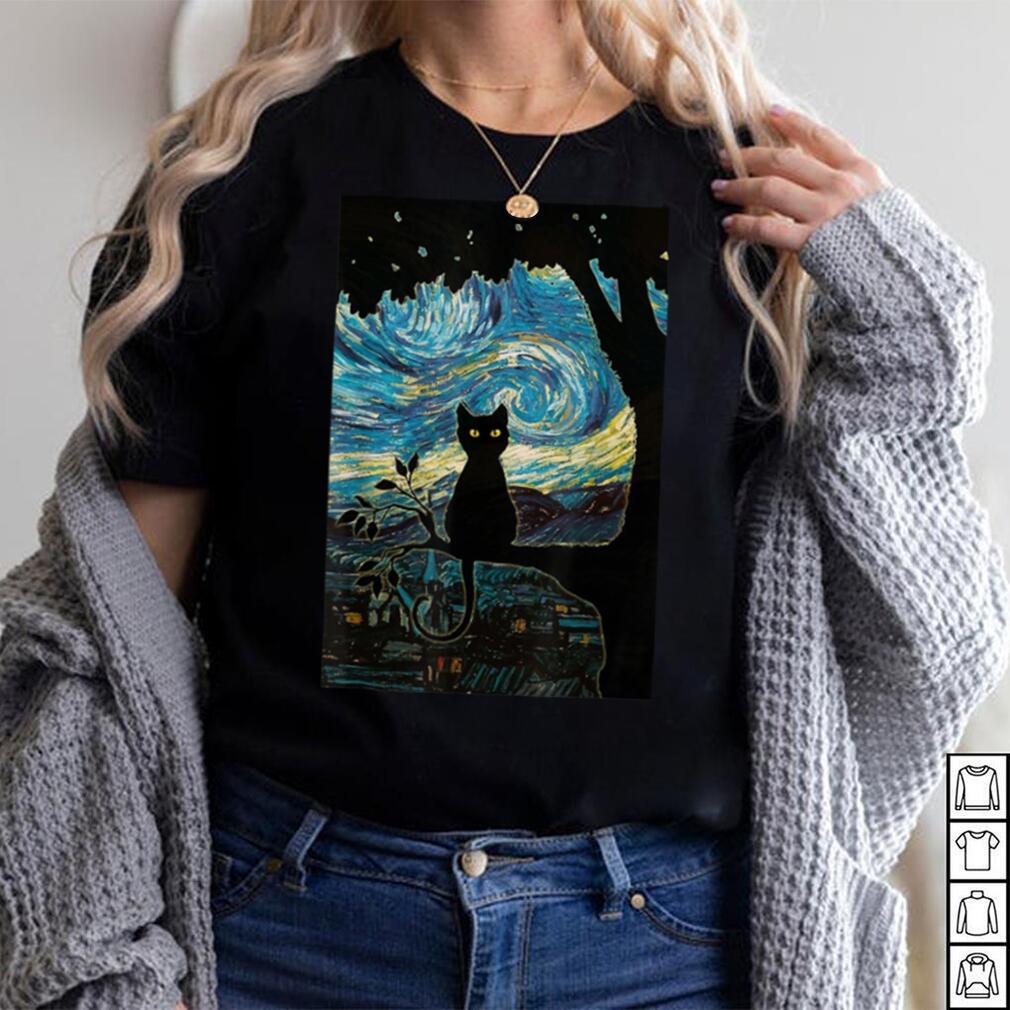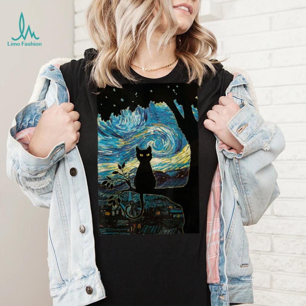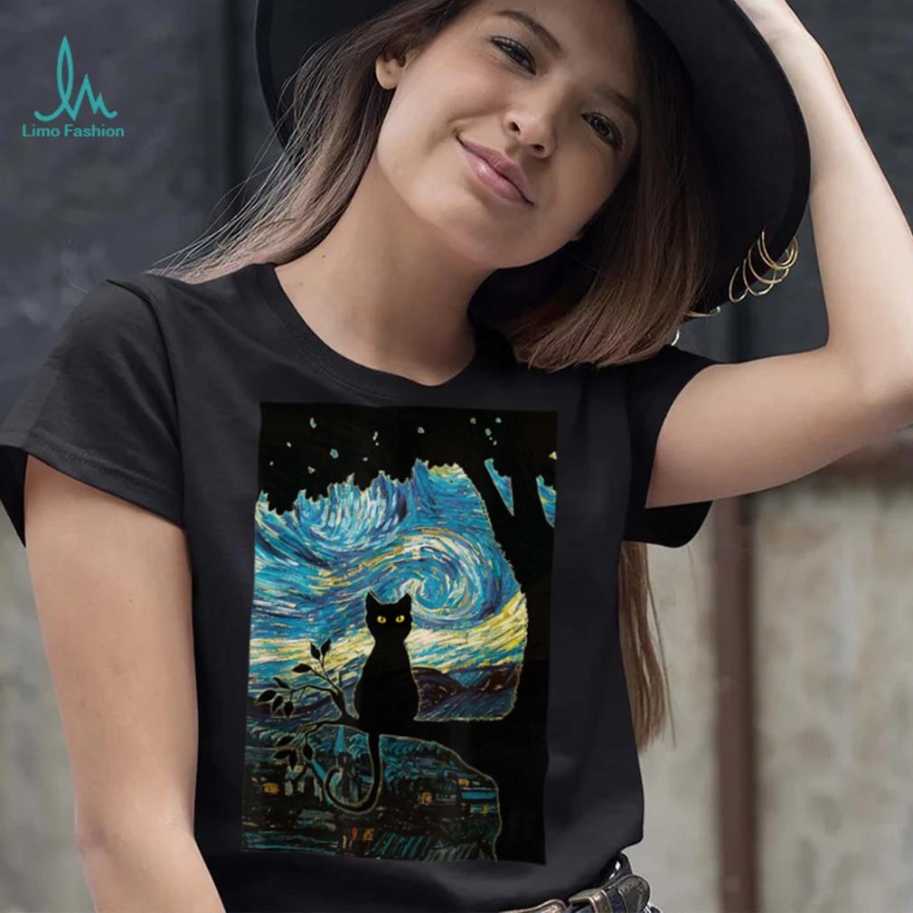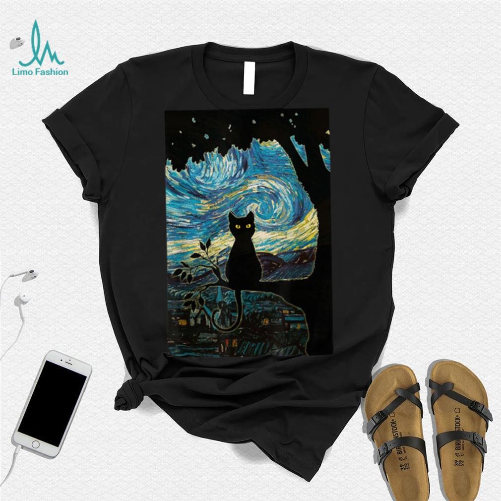 ()Cat Tshirt Starry Night Cat Tee, Van Gogh Cat Black Gift T Shirt