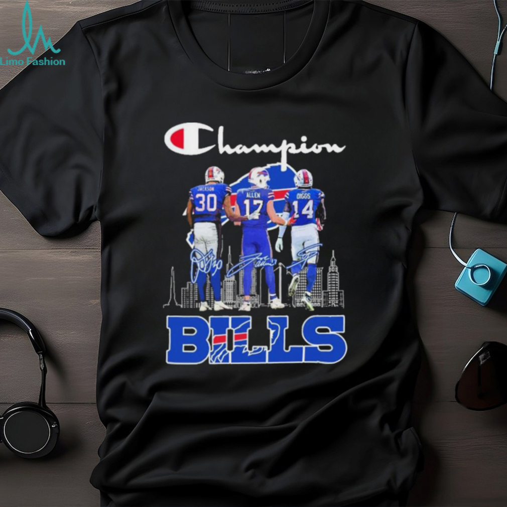 Champion Josh Allen Dane Jackson And Stefon Diggs Buffalo Bills Signatures Shirt, Hoodie, Sweater, Vneck, Unisex and T-shirt