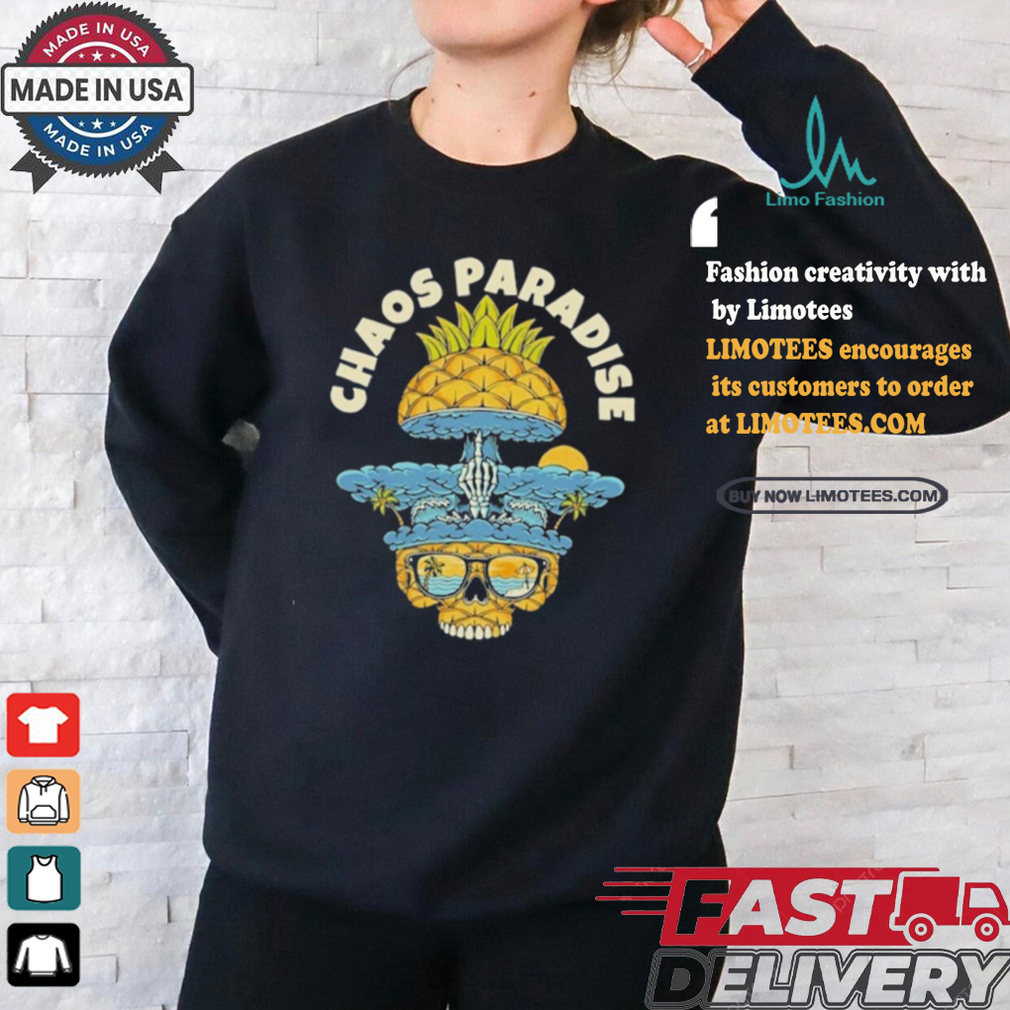 Complication in life often arises Chaos Paradise The Skull Reserve Shirt we are worrying and planning about the future. We can become so concerned about what may happen tomorrow or next year that we forget to enjoy the present moment or rather we carry too much burden & melancholic memories from the past slowing decaying our soul. To have one’s focus on the present and now, is to encompass life as it is supposed to be.
