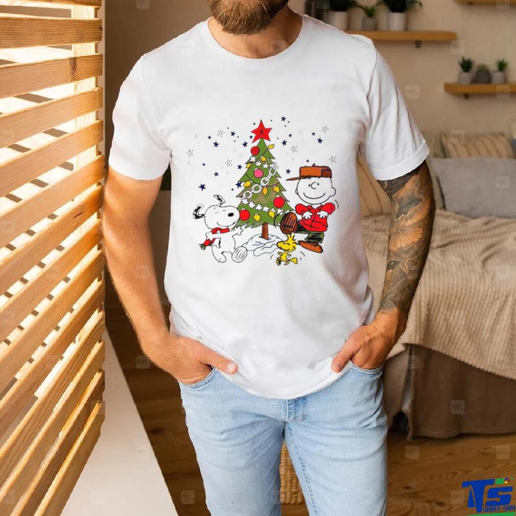 Charlie Brown and Snoopy Christmas tree shirt0