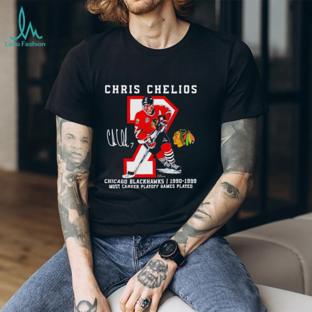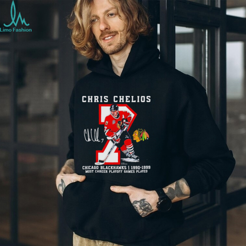 Chris Chelios 7 Chicago Blackhawks Most Career Playoff Games Played signature shirt. Categories of this T-shirt is teejeep, Chris Chelios 7 Chicago Blackhawks Most Career Playoff Games Played signature shirt from Dadyshirt ✓ Unique designs ✓ Large assortment ✓ Comfortable ✓ High-quality ✓ Easy to care for ✓ Available in a range of colours and styles for men, women ✓ Shop now ✓