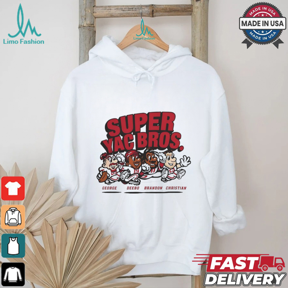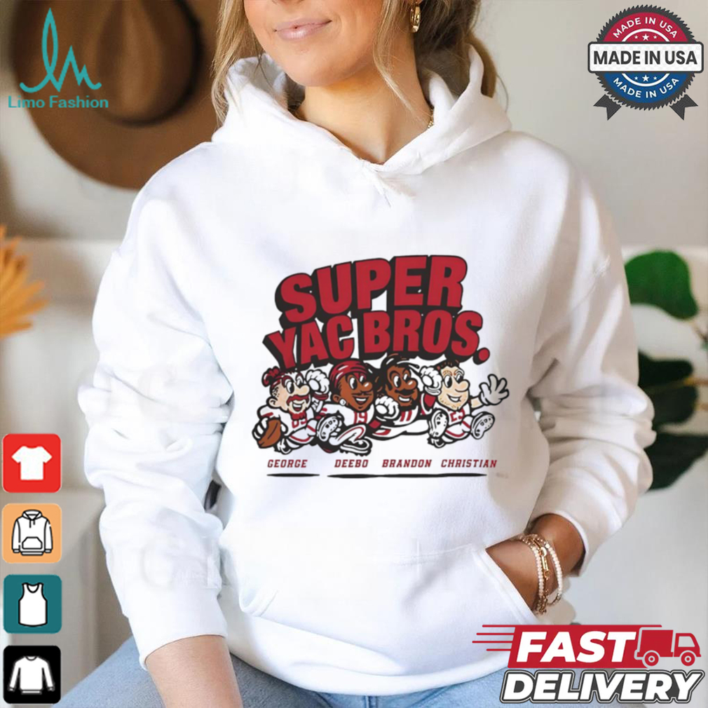 ()Christian McCaffrey San Francisco 49ers Super Yac Bros shirt. Categories of this T-shirt is teejeep, Christian McCaffrey San Francisco 49ers Super Yac Bros shirt from Dadyshirt ✓ Unique designs ✓ Large assortment ✓ Comfortable ✓ High-quality ✓ Easy to care for ✓ Available in a range of colours and styles for men, women ✓ Shop now ✓