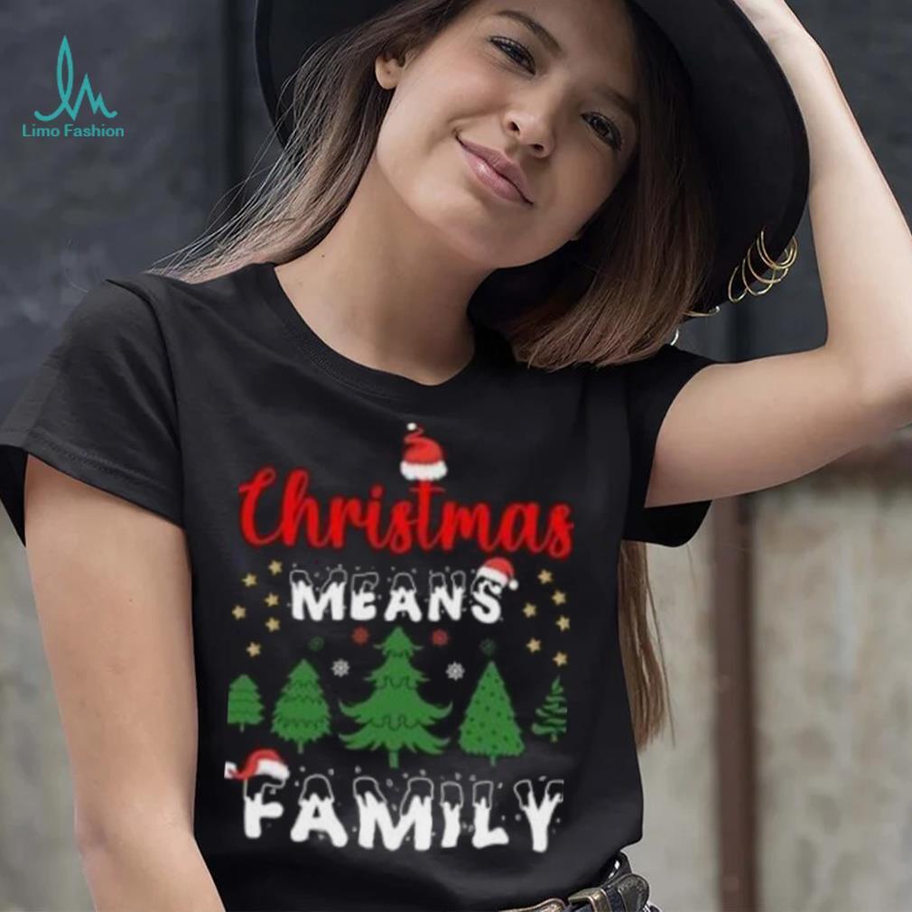 The truckers were speculator and had invested in the Christmas tree to sell to Christmas tree lots so they would have fresh trees. In the past years this had worked out very well, but because of all the Christmas means family pine tree Christmas T Shirt , no one wanted the tree. They were going to have to pay to bring them to the dump, so they decide to give them away. I asked the cop and the owner if I could find a place for them to move to, would let them go, it is Christmas. They agreed. I phoned the radio station (a long time before cell phones, this was done on a pay phone) I told them what the problem, the trees were free, but they needed some place to put the trees.