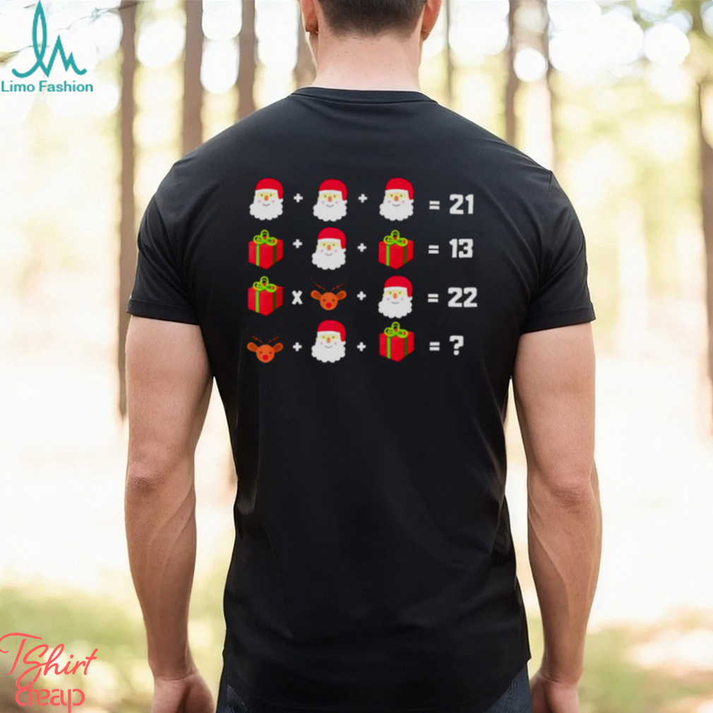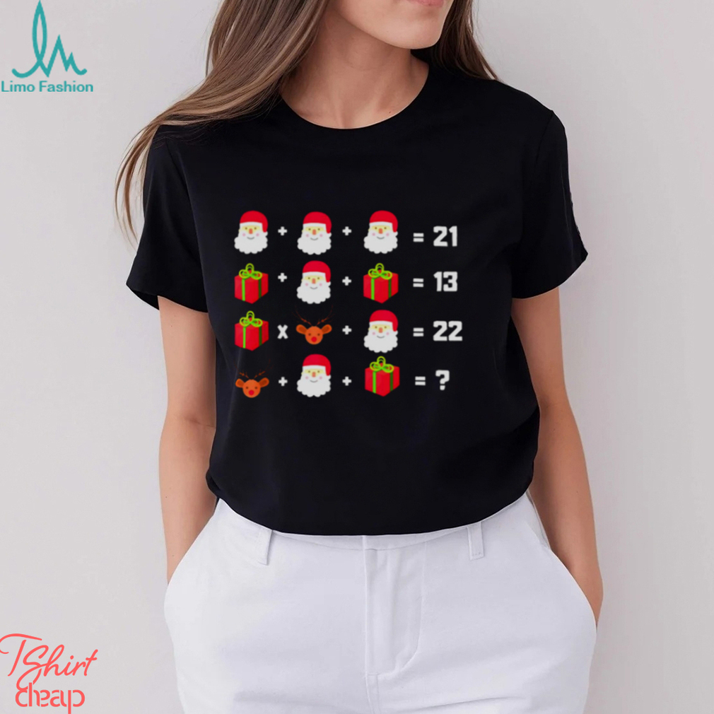 No, I’m very comfortable with saying “Merry Christmas” to people. I’m atheist as well, and I celebrate Christmas. The vast majority of the Christmas Teacher Math Equations shirt of Christmas are secular, ranging from the general motive of exchanging gifts and spending time with your loved ones all the way to Santa Claus and Rudolph the Red Nosed Reindeer. Christmas these days is about as secular as paying cash (In God We Trust), going to elementary school (saying the Pledge of Allegiance), or going to court (Ten Commandments in front of court houses): in other words, while it’s still a tiny bit religious and it does make me a bit uncomfortable, they are still for the vast majority secular and I still willingly participate in these activities.