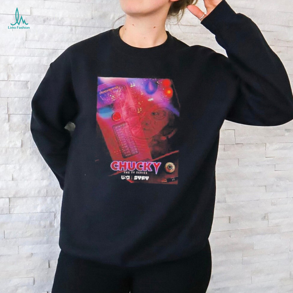 One morning I was in the kitchen, Chucky The TV Series New Episodes T Shirt ready to leave for work, when I heard a clattering noise in the front hall. I ignored it, but it got louder. I went to investigate and saw my cat Little Bit had dragged my mp3 player and earbuds to the stairs and was pushing them down. She pushed them the rest of the way down so they were at my feet and then she sat and looked up at me. I normally take them with me every morning, but had forgotten them on my dresser that day.