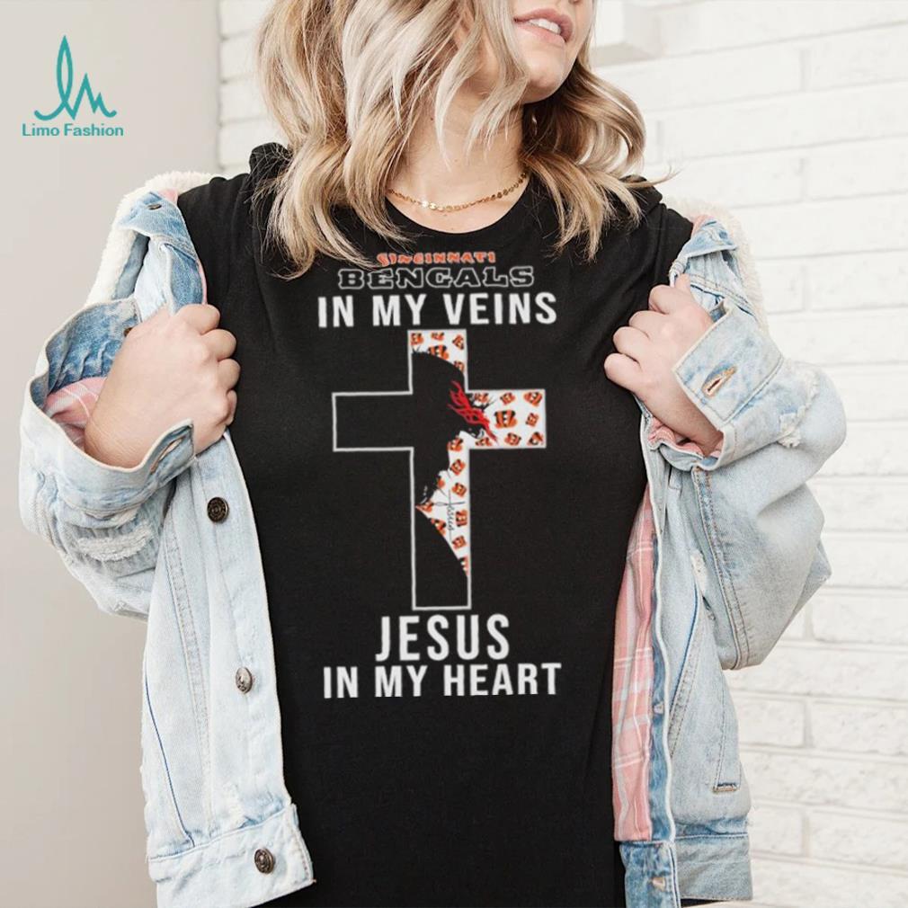 ()Cincinnati Bengals NFL In My Veins Jesus In My Heart Cross 2024 T Shirt