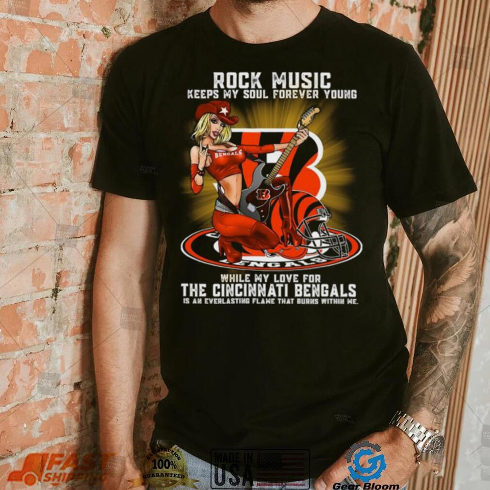 With the ascent of pay in the year 2022, the year is likewise liable to see a Cincinnati Bengals rock music keep my soul forever young shirt stage in hoarding abundance. Cancer local in the year 2022 can plan to get property, wares and even look for credit to obtain these wares. Subsequently, the resource base is probably going to be vastly improved in the year 2022. Look for credit help just to the degree that is required. Once more, the year will close well for locals hoping to get hitched. On the off chance that you had any separation previously and couldn’t look forward, the year 2022 will empower you to gradually forget the past and search for a more promising time to come. Singles will likewise track down a decent accomplice for their life and this will empower them to lead an excellent heartfelt connection. At last, marriage is on the cards.