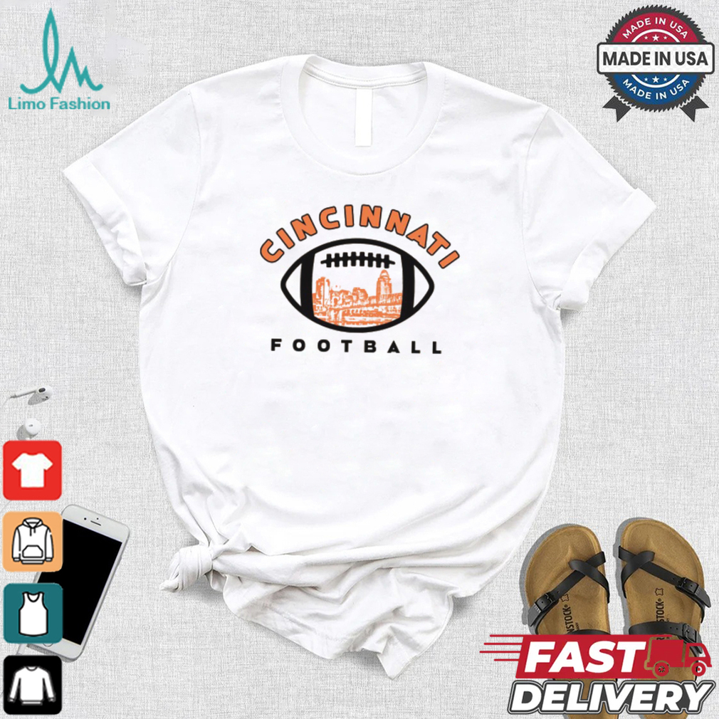 Geography. Pick the local team. If you are in say Miami, congratulations you can be a Dolphins fan and if you want to support teams across several levels, then the Dolphins for the NFL, Miami Hurricane among the power college programs and Florida International Panthers in the so-called Group of 5. If you are in an area not near an NFL team pick a Cincinnati Football Skyline shirt college and could even find enjoyment following a small regional team that plays in Division II or III or Division I FCS. Aesthetic reasons. You like the dark blue and orange combo of the Denver Broncos then that can be your team (also opens up the Boise State Broncos in college football). I’m a Denver Broncos fan and Kansas City is a Cincinnati Football Skyline shirt rival but I have to admit I like their home uniform. Like red and black? That gives you the Atlanta Falcons in the NFL, Texas Tech and Arkansas State and Cincinnati just off the top of my head. I don’t like the University of Texas but I happen to think their road uniform is one of the best in college football.