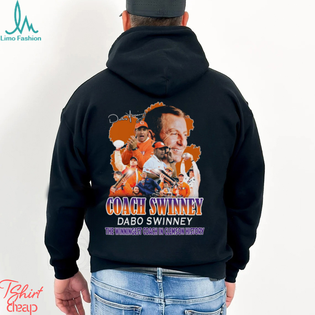 There is surely something is wrong with the Coach Swinney Dabo Swinney The Winningest Coach In Clemson History T Shirt of those who raise this kind of questions at all! Being politically and ideologically opposed does not mean an inveterate social and religious vengefulness. What was envisaged there is a certain kind of ideological framework for the country based on its age-old ethicality and prevent India from losing its identity in the flood waters of the anarchical and hegemony-anchored Western Culture. It is not because secular forces fight against ISIS or Al-Qaeda that secularists systematically despise Islam or its followers. Nor is it because India is engaged in a protracted conflict with Pakistan that India despises Pakistanis wholesale. Do understand that India has a very unique cultural ethos. All so, that the Western social ethos does only encouraging baser instincts of people and subtly acquires power over them in the name of controlling the consciously unleashed waywardness in the name of law.