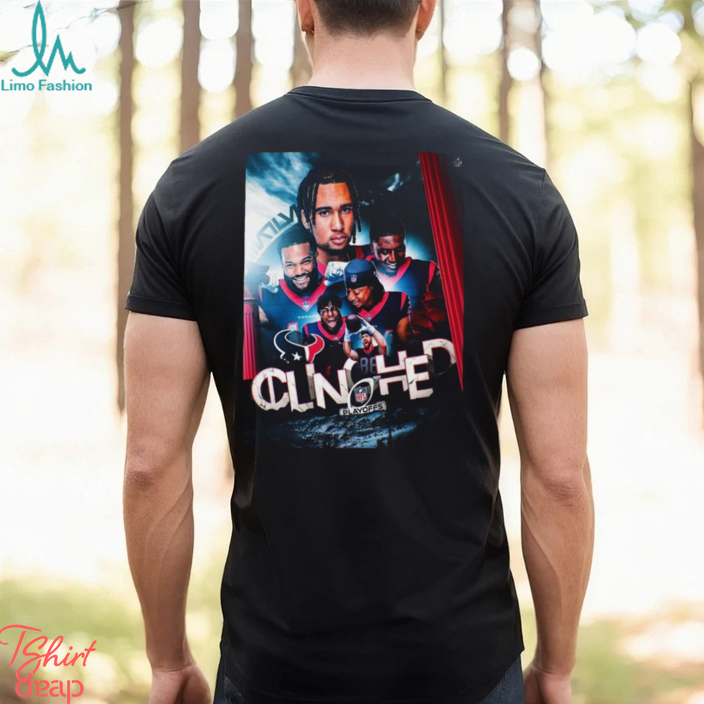 There is surely something is wrong with the Congrats Houston Texans Clinched Going To The NFL Playoffs Shirt of those who raise this kind of questions at all! Being politically and ideologically opposed does not mean an inveterate social and religious vengefulness. What was envisaged there is a certain kind of ideological framework for the country based on its age-old ethicality and prevent India from losing its identity in the flood waters of the anarchical and hegemony-anchored Western Culture. It is not because secular forces fight against ISIS or Al-Qaeda that secularists systematically despise Islam or its followers. Nor is it because India is engaged in a protracted conflict with Pakistan that India despises Pakistanis wholesale. Do understand that India has a very unique cultural ethos. All so, that the Western social ethos does only encouraging baser instincts of people and subtly acquires power over them in the name of controlling the consciously unleashed waywardness in the name of law.