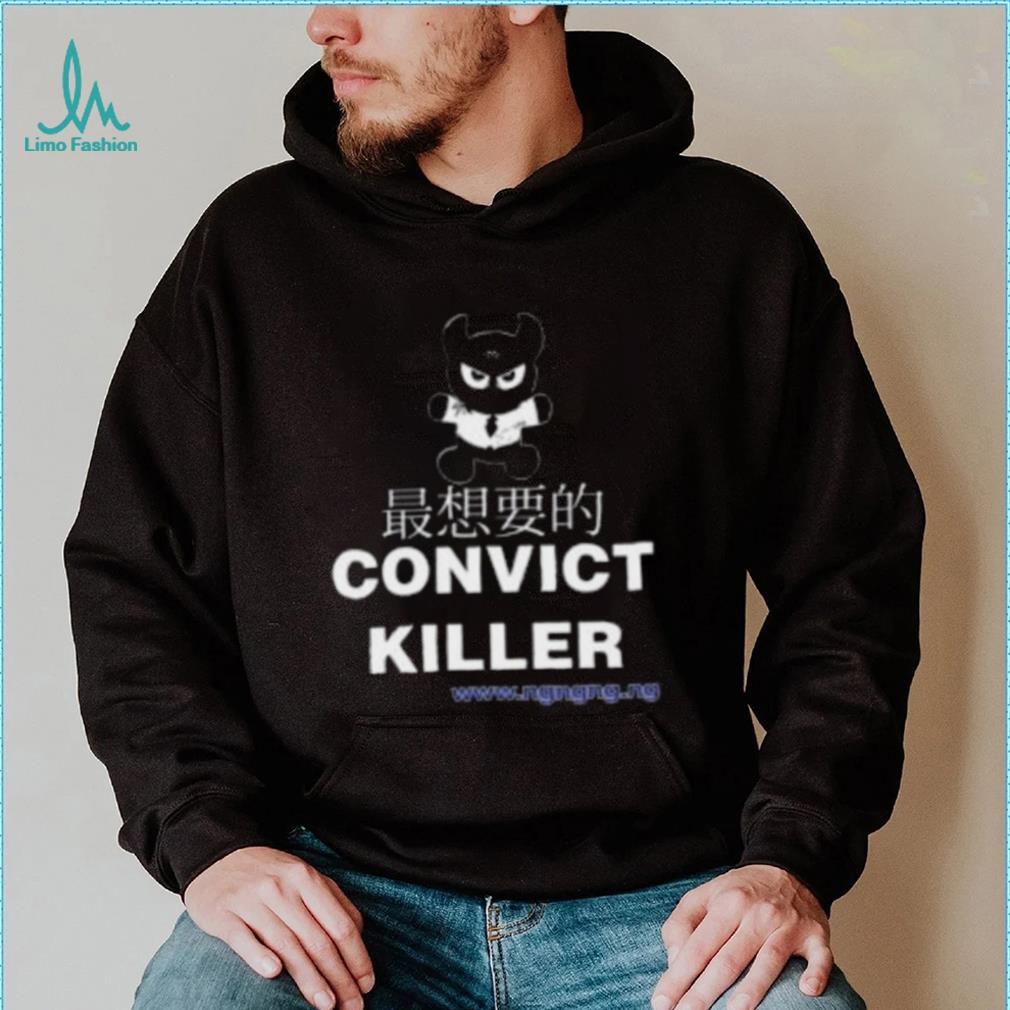 At this point Mephistopheles returns and Beethoven informs the Convict Killer 95 Shirt that he will not allow his music to be destroyed. Desperate to receive the Tenth Symphony, Mephistopheles makes another deal: if Beethoven will give over only the Tenth Symphony, then Mephistopheles will not take the composer’s soul. After an appearance by Mozart’s ghost, Beethoven refuses this offer as well. As a final tactic, Mephistopheles points out the window to a young orphan and describes the tortures that she will receive if Beethoven refuses to hand over his music. Heartbroken, Beethoven agrees to hand over his Tenth Symphony. After Twist’s prompting, a contract is drawn up by Fate stating the following.