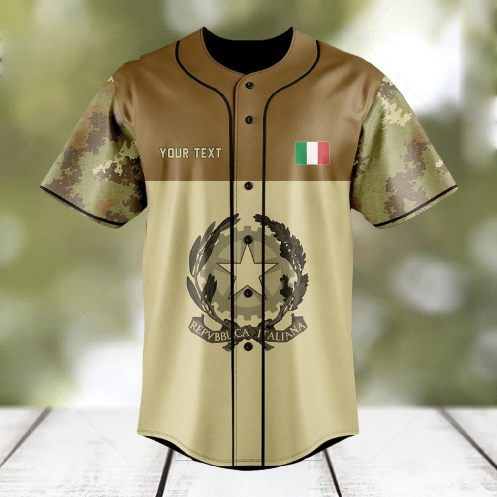 ()Custom Name Italy Coat Of Arms Camo Style Baseball Jersey Shirt Gift For Men And Women,