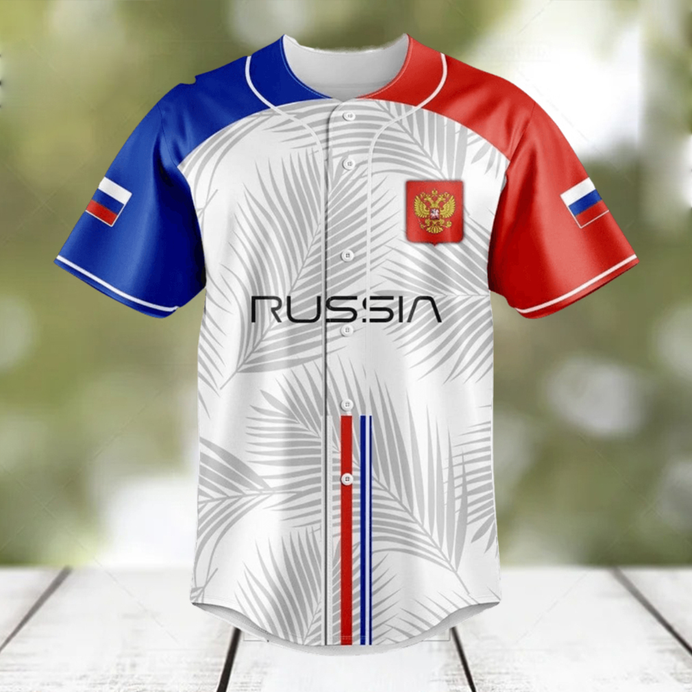 ()Custom Name Russia Flag Palm Leaf Baseball Jersey Shirt Gift For Men And Women,