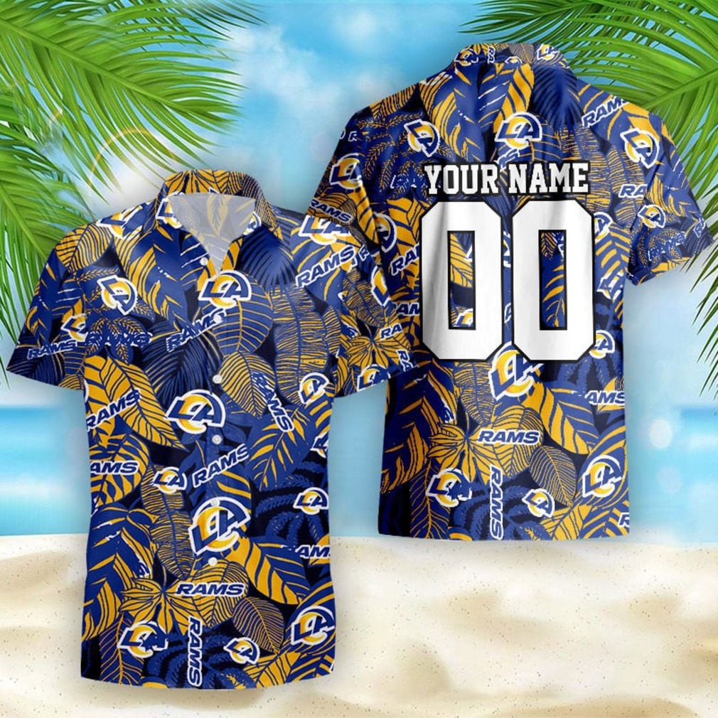Customizable Los Angeles Rams Tropical Leaves Hawaiian Aloha Shirt