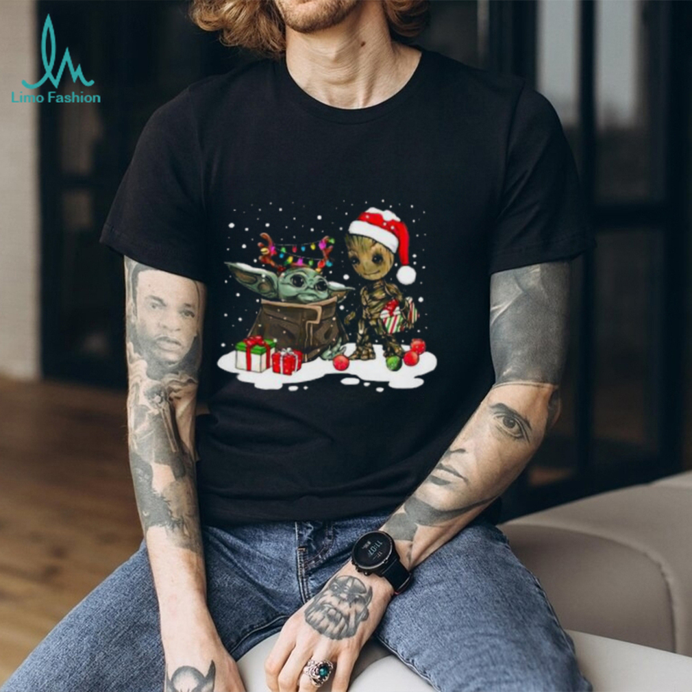Best Cute Christmas Collection Baby Yoda And Groot Santa Christmas Light Shirt