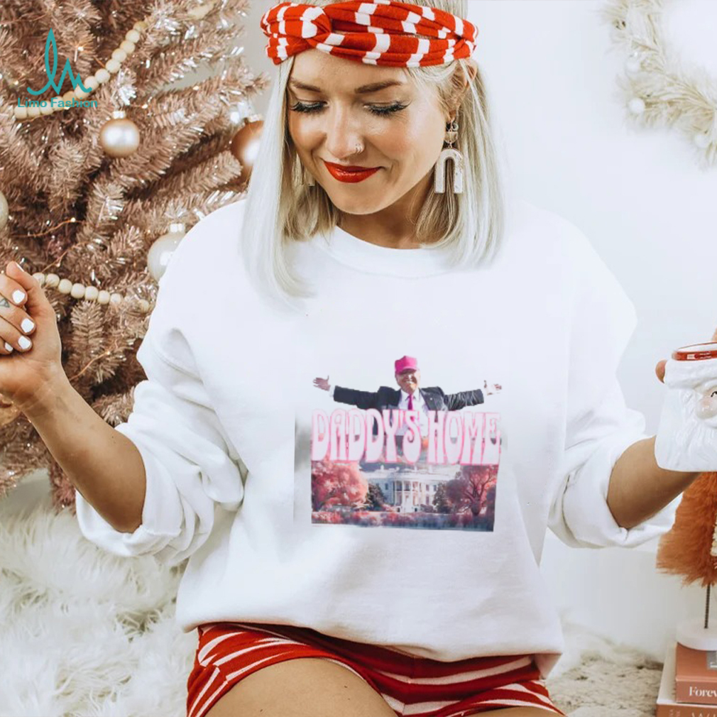I was hoping Delores wouldn’t become a Daddys Home White House Trump 2024 Shirt aggressive rooster, as my recently deceased “Lance” had been, before passing on to “rooster heaven” with the assistance of a local coyote. The rooster I currently had, Gordon, was a sweet boy and was very happy to have Lance gone. Lance had been a fierce rooster who attacked literally every moving thing but the hens and me (displaying extreme good taste and discretion) and I was not prepared to live through as second several years of yet another “attack rooster”. Neither were the neighbor dogs. Nor were the neighbors, for that matter. I really didn’t think this would be a problem, as Delores was such a sweet rooster – showing no violence or aggression at all, and just wanted to sit on my shoulder (rather like a parrot) and look around. He’d snuggle against anyone’s neck or in anyone’s lap who would hold him and he adored being petted. Delores ran around digging for bugs in the lawn – but was just as happy sitting by the kitchen sink watching me trim vegetables or whatever. He made (as all my chickens did) a truce with the cats and was friends with the goats, horses and my other rooster, Gordon. They all slept together in the barn at night.
