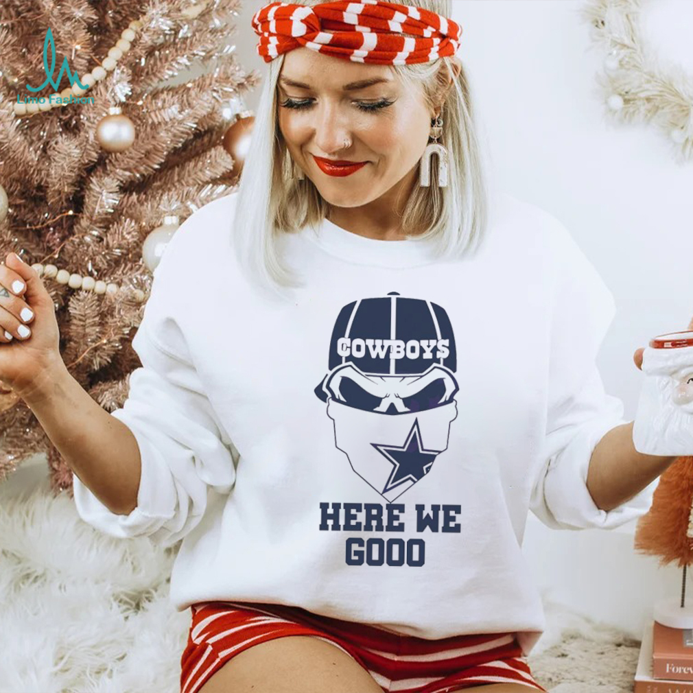 Its increasingly harder to get the NFL to commit to what a CATCH actually is (a TD in Chicago can be called a non catch in Seattle, even though the same exact type of Dallas Cowboys Skulls Here We Go Shirt catch was made). The main reason for this, the NFL does not hire FULL TIME officials. These are men (and now women) with other jobs that while they are fully trained, do not do this full time as their main work. Further more, NFL officials work together as teams during the regular season. The Playoffs for Referees is just like for the rest of the NFL..the best of the best get to join in. That means you have Line Judges from one team mixed with Referees from another team, because those two people graded the highest during the season, and their reward is.. to ref the playoffs…and Super Bowl. A lot can be said about team chemistry, and how well a Dallas Cowboys Skulls Here We Go Shirt team works together. Well keep that in the Officiating too please NFL. Pick the best TEAMS and keep them together in the NFL.