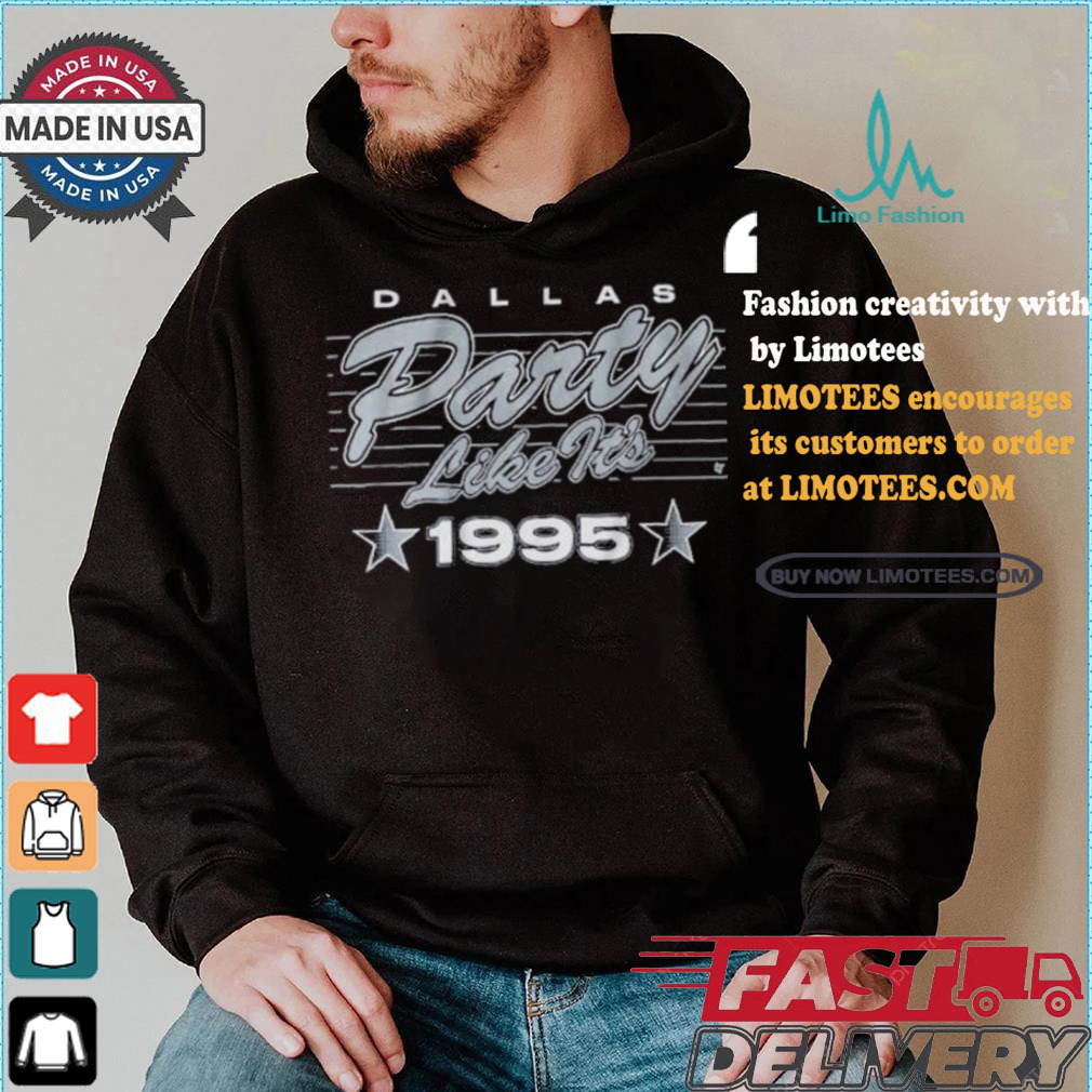 Everything that was in that movie is what my family did at Christmas. Mom and dad took my sisters, Lori and Tracy and I to see Santa so we could tell him what we wanted for Christmas. Yes the Dallas Football Party Like It’s 1995 T shirt were long and my older sisters, two years older than me, would be with me looking after me as we moved up the line toward Santa and just like in the movie, the closer we got, the scarier Santa was. “Don’t be scared RJ, Santa is nice okay, don’t be scared now, we’re here,” Tracy would say as we moved closer. Of course that didn’t help me, but I was okay when I got there. I never cried. Mom and dad also took us to the Santa Claus parade. They made sure Tracy went pee before the parade because dad didn’t want to take her somewhere to find a bathroom during the parade. Something that he would have had to do if she didn’t go. And she went a lot. We would walk and look into the department store windows and see the toys and moving elves that the kids saw in the movie. Like Ralphie, I would get mom to order things for me from the comics, neat little gadgets they advertised.
