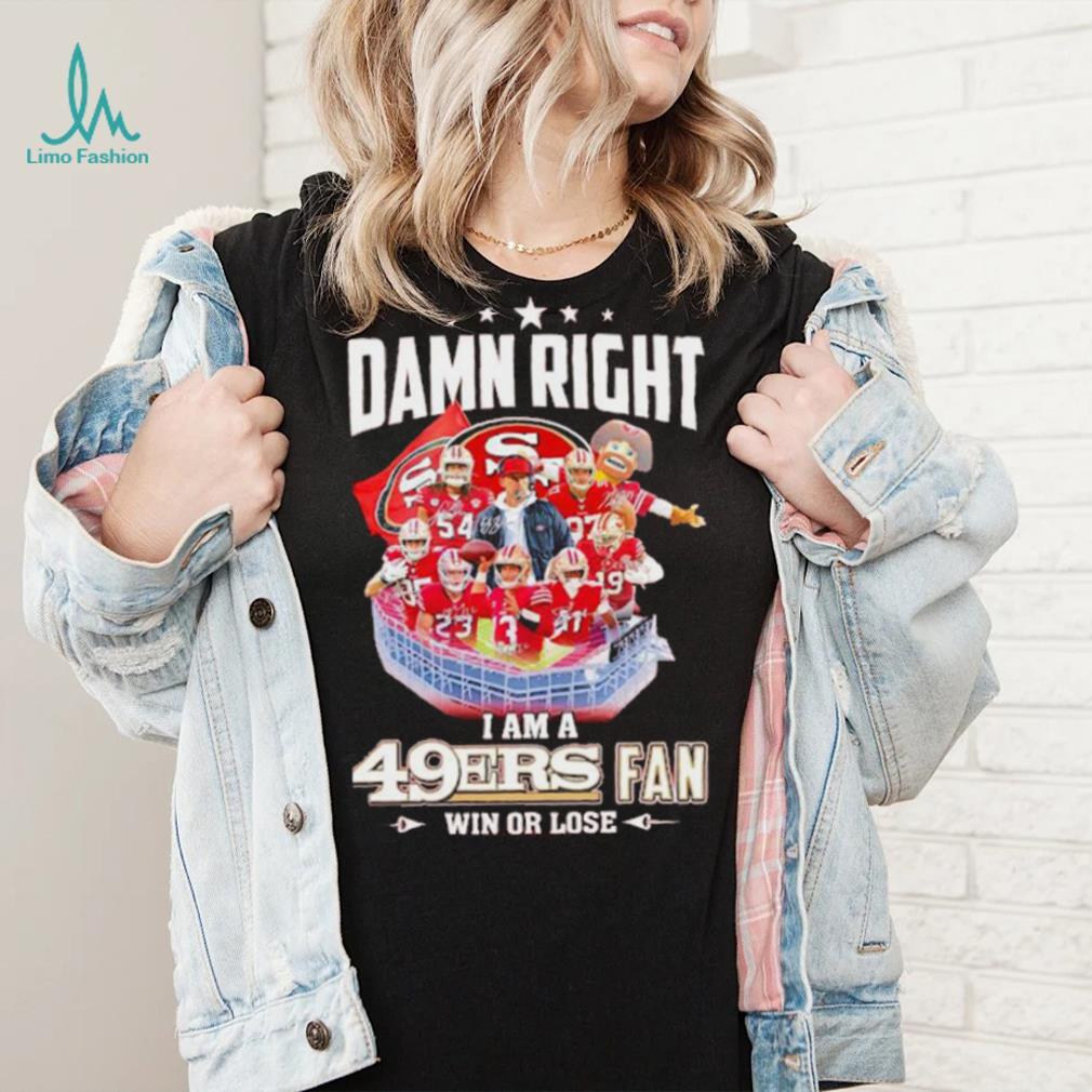 Though many people refer to the holiday as Chinese New Year, Chinese people aren’t the Damn right I am a 49ers fan win or lose signatures shirt who celebrate. The holiday, which is Friday, Feb. 12, this year, is widely celebrated across East Asia and some parts of Southeast Asia. As such, the holiday goes by many names Tết in Vietnam, Losar in Mongolia, Imlek in Indonesia and Tsagaan Sar in Tibet, to name a few. Many of these communities traditionally hand out gifts like mandarin oranges or red envelopes filled with money, usually from an elder to children, or unmarried people. The Iu-Mien community, a Southeast Asian minority group from China, traditionally gives out dyed red eggs. Many East Asian communities will also light firecrackers, clean their houses from top to bottom useful during a pandemic and burn paper money for their ancestors. And lion dances, although commonly associated with Chinese culture, can be found in Lunar New Year celebrations across Vietnam, Korea, Tibet and Indonesia. One might also wear traditional outfits, such as Korean hanboks, or play games like yut and mahjong.