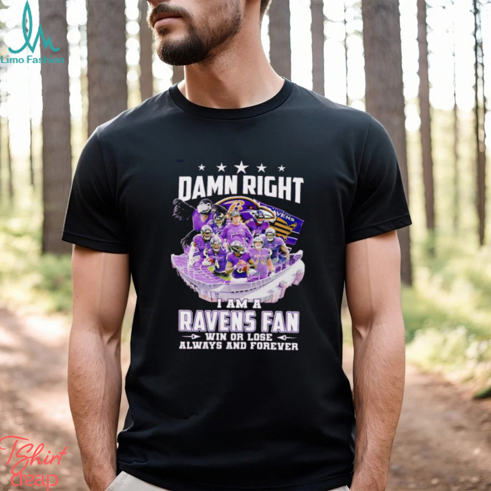 Damn right I am a Baltimore Ravens fan win or lose always and forever shirt