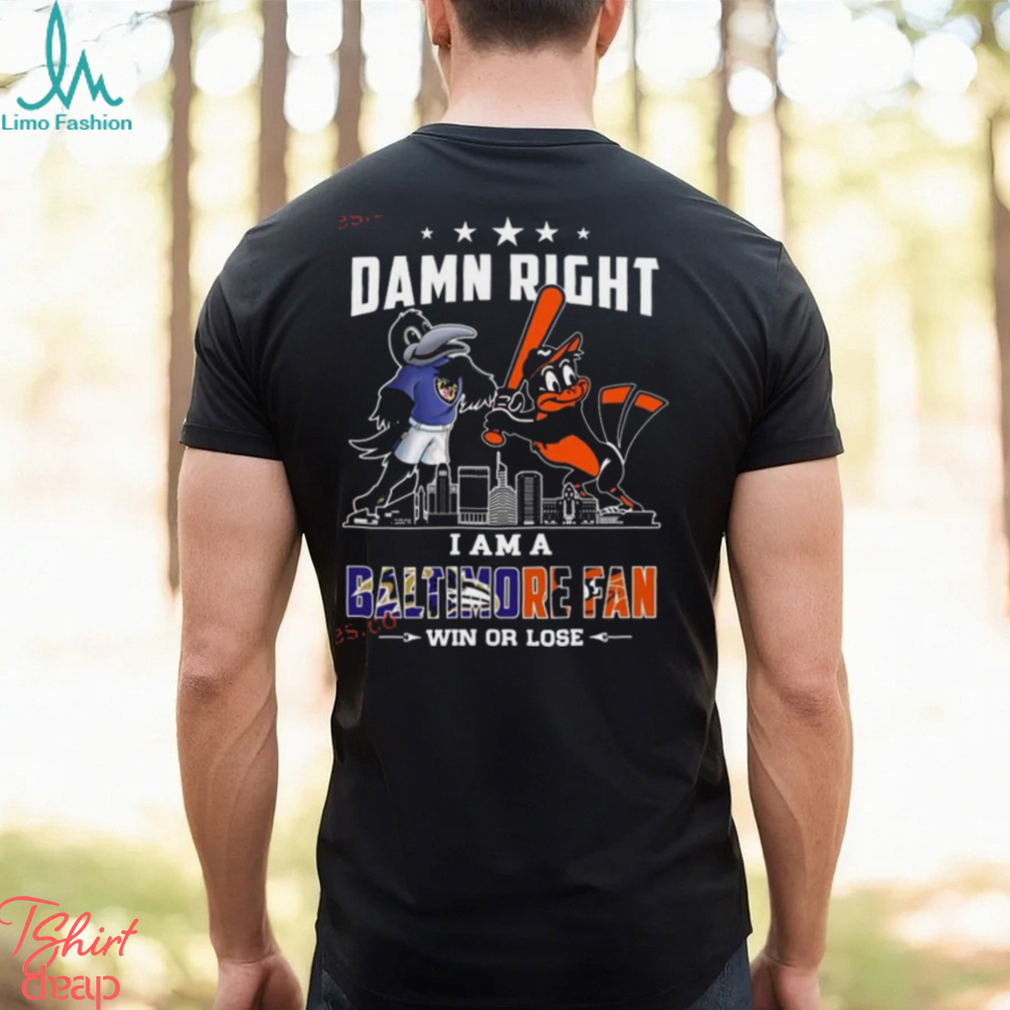 Damn Right I Am A Baltimore Sports Team Mascot Fan Win Or Lose Shirt