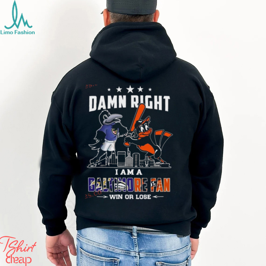 ()Damn Right I Am A Baltimore Sports Team Mascot Fan Win Or Lose Shirt hoodie, tank top, sweater and long sleeve t-shirt