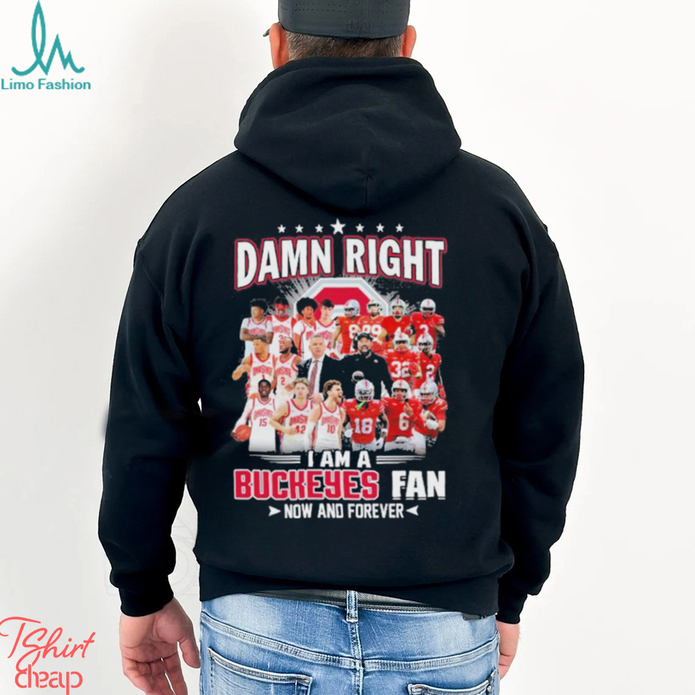 Damn right i am a Buckeyes fan now and forever 2023 shirt hoodie, tank top, sweater and long sleeve t-shirt