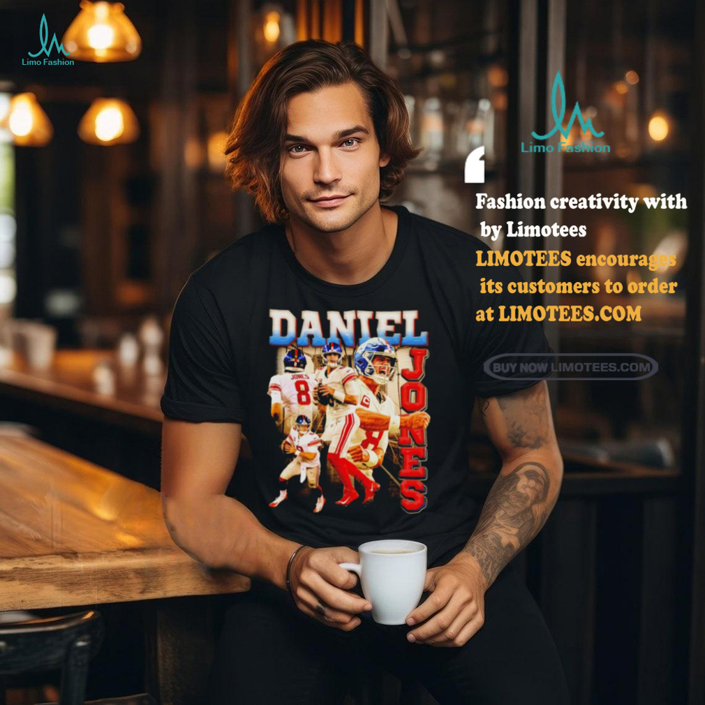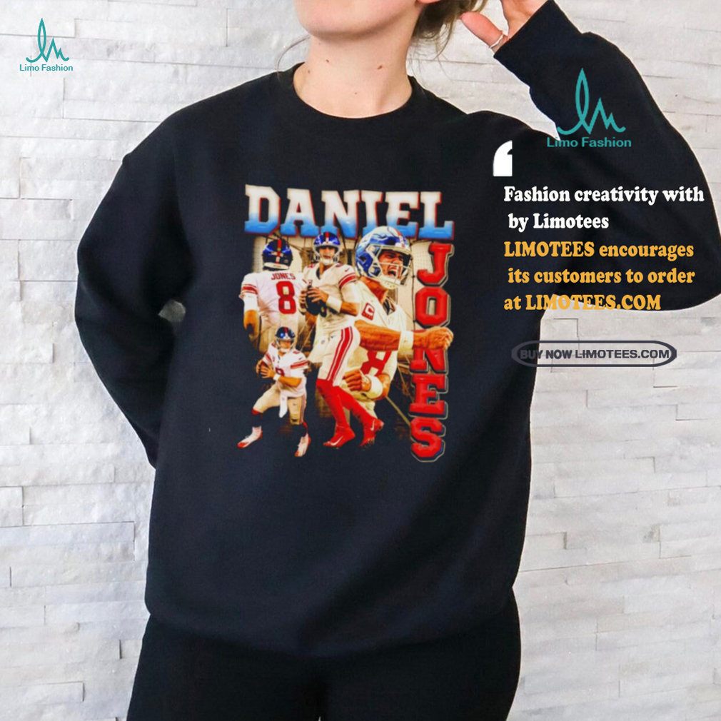 He needs to be bathed, Daniel Jones New York Giants football #8 Shirt , clipped at the groomers. He barks at loud noises, fireworks, gun shots, thunderstorms, air nailers. He barks at dogs and cats on TV, anyone who comes to the door, the garbage men, the propane man, the mail carrier, you name it. I have taught him some tricks; he can shake, smile, speak with an inside voice, and sneeze on command. He can dance and twirl, and put his front paws together like he is praying or begging.