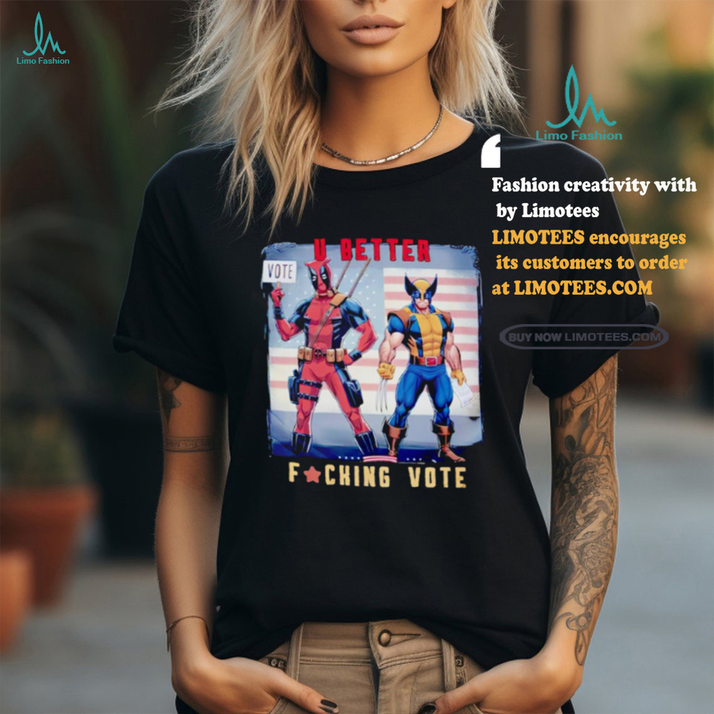 This is because people do not Deadpool For Election 2024 u better fucking vote shirt a definite standard for well-being, as human beings are almost adaptable to all living conditions (we adapt very quickly to all living conditions, be it good or bad, this trait is important for our survival). In fact, theoretically, you will never become satisfied in this sense. Therefore, it is important to note point.