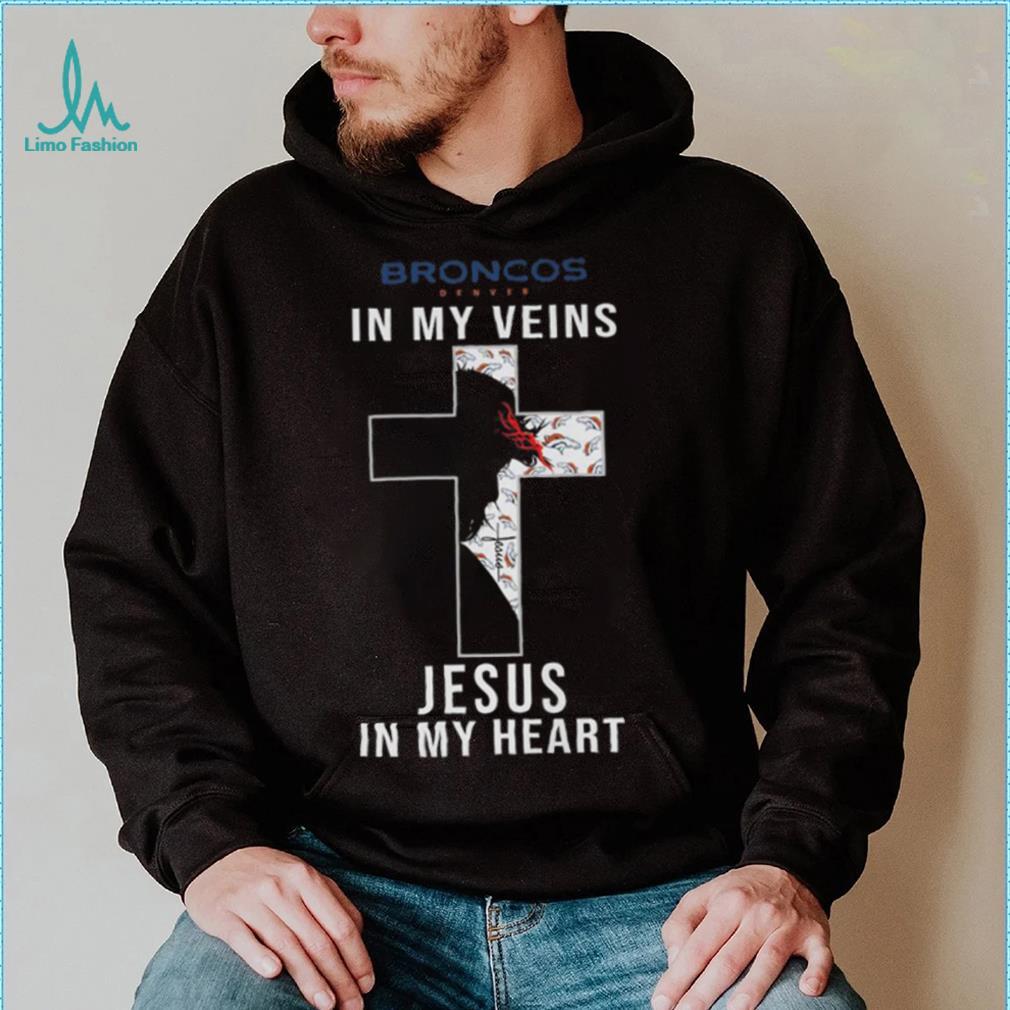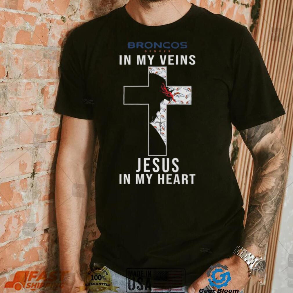 I celebrate Christmas because everyone in the Denver Broncos In My Veins Jesus In My Heart Cross Shirt celebrates Christmas, or at least it seems that way. Even my kid’s Hindu and Muslim friends celebrate Christmas! So it’s rather expected and it would be extremely unusual not to. Like an act of rebellion. I am a rebel in a lot of ways, but I’ve got no steam left for Christmas. Go on and have it.