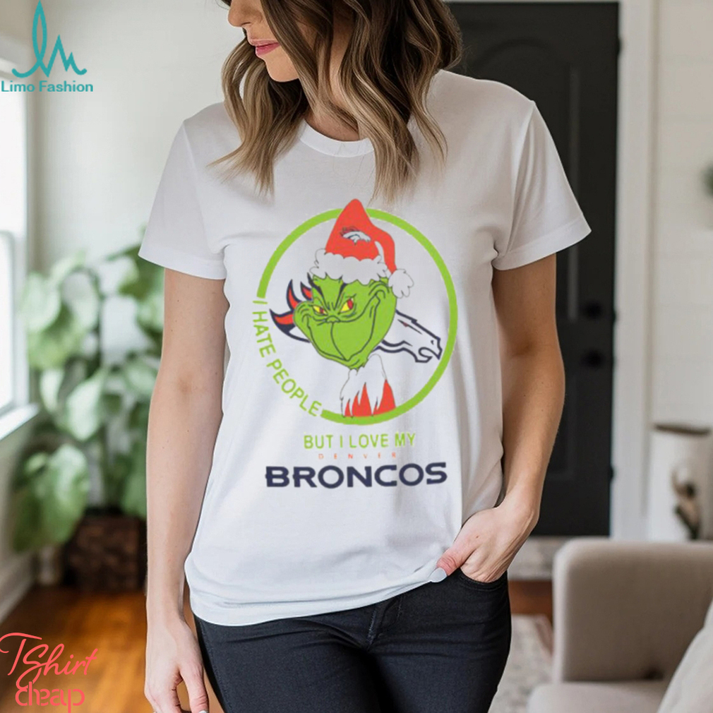 Denver Broncos NFL Christmas Grinch Shirt I Hate People But I Love My Denver Broncos