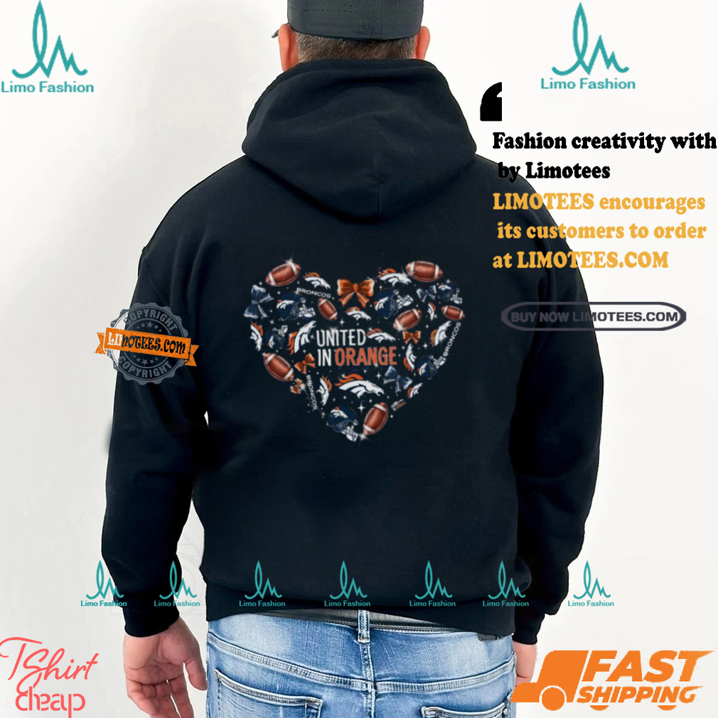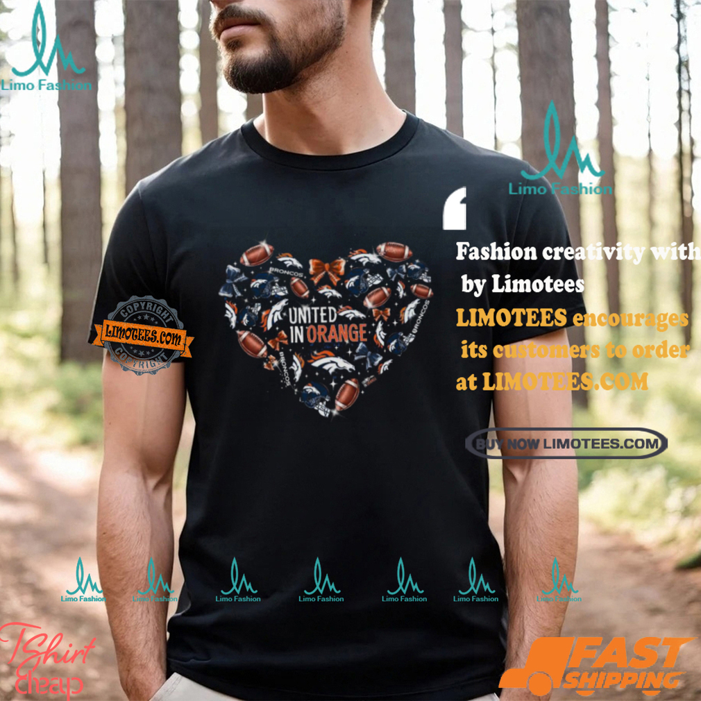 Denver Broncos United In Orange Football Lover Heart T Shirt hoodie, tank top, sweater and long sleeve t-shirt