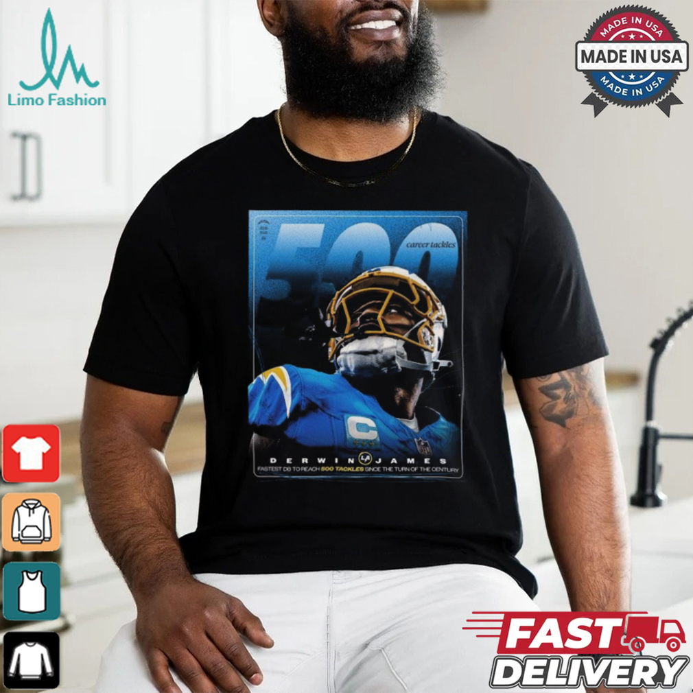 Derwin James Los Angeles Chargers 500 career tackles since the turn of the century shirt. Categories of this T-shirt is teejeep, Derwin James Los Angeles Chargers 500 career tackles since the turn of the century shirt from Dadyshirt ✓ Unique designs ✓ Large assortment ✓ Comfortable ✓ High-quality ✓ Easy to care for ✓ Available in a range of colours and styles for men, women ✓ Shop now ✓
