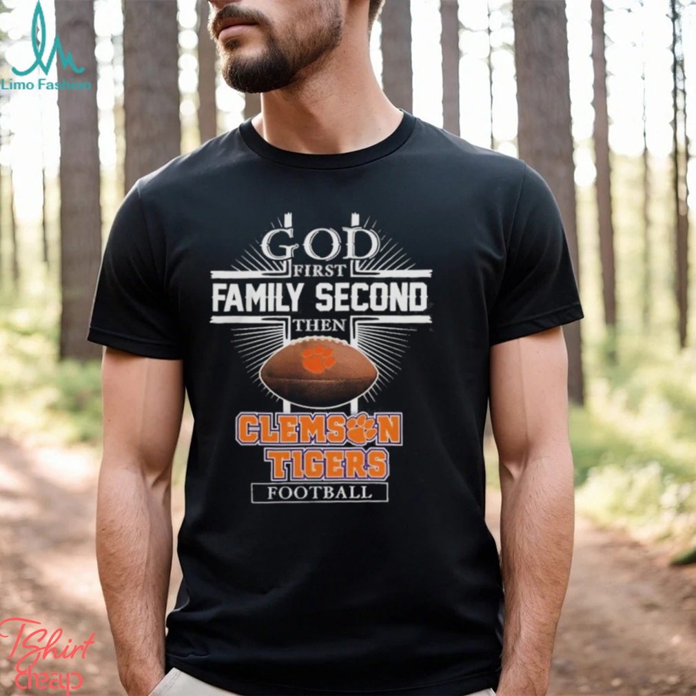 Oh Dear. Thats a big job. I have spend Christmas in maybe 20 different countries. And there are so many differences. Even in different regions of the Design God First Family Second Then Clemson Tigers Football 2023 Shirt. The longest Christmas is celebrated in the Philippines, with street festivals and street marches, typical foods, drinks, footstalls and colorfull decorations allover, and it lasts from Dec 16 till January 7 Finland was very impressive. With everything covered in snow and lanterns all along the walkways between houses. The whole country smells of Glög, a red wine, spices combination. Decorations with Gingerbread figures, and lots of typical food. Christmas Eve is with family. next day is mutual visiting of friends and neighbours, and boxing day is going to clubs. Dont forget: 24 hours pitch dark. But on Christmas eve/night lots of Northern lights across the sky. Like it was ordered right above the midnight church.