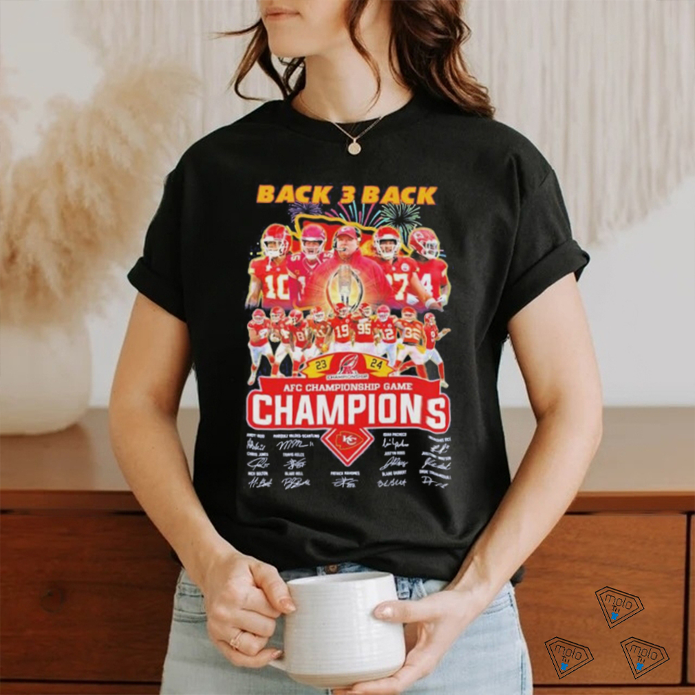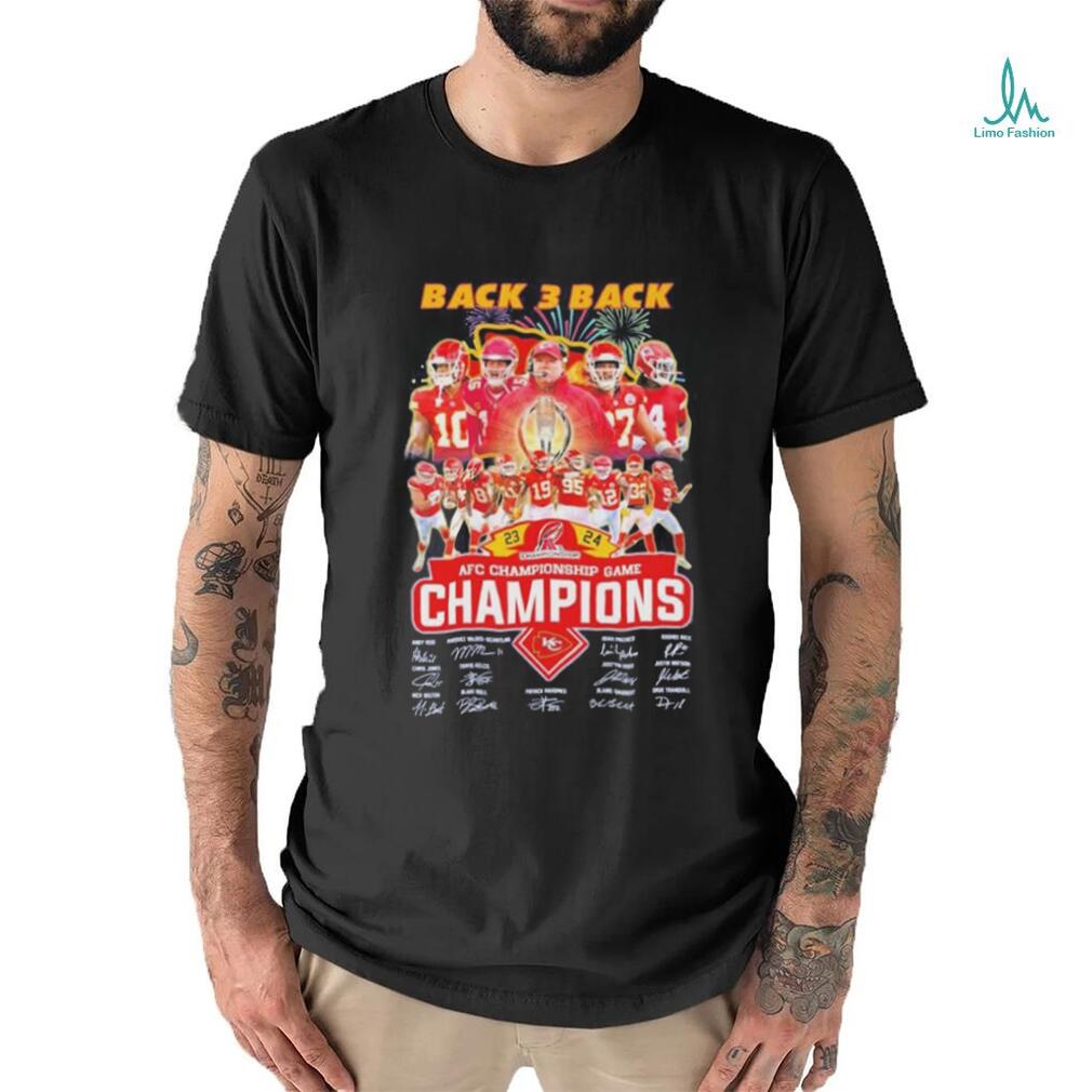 ()Design kansas city chiefs back 3 back team afc championship game champions signature shirt. Categories of this T-shirt is teejeep, Design kansas city chiefs back 3 back team afc championship game champions signature shirt from Dadyshirt ✓ Unique designs ✓ Large assortment ✓ Comfortable ✓ High-quality ✓ Easy to care for ✓ Available in a range of colours and styles for men, women ✓ Shop now ✓