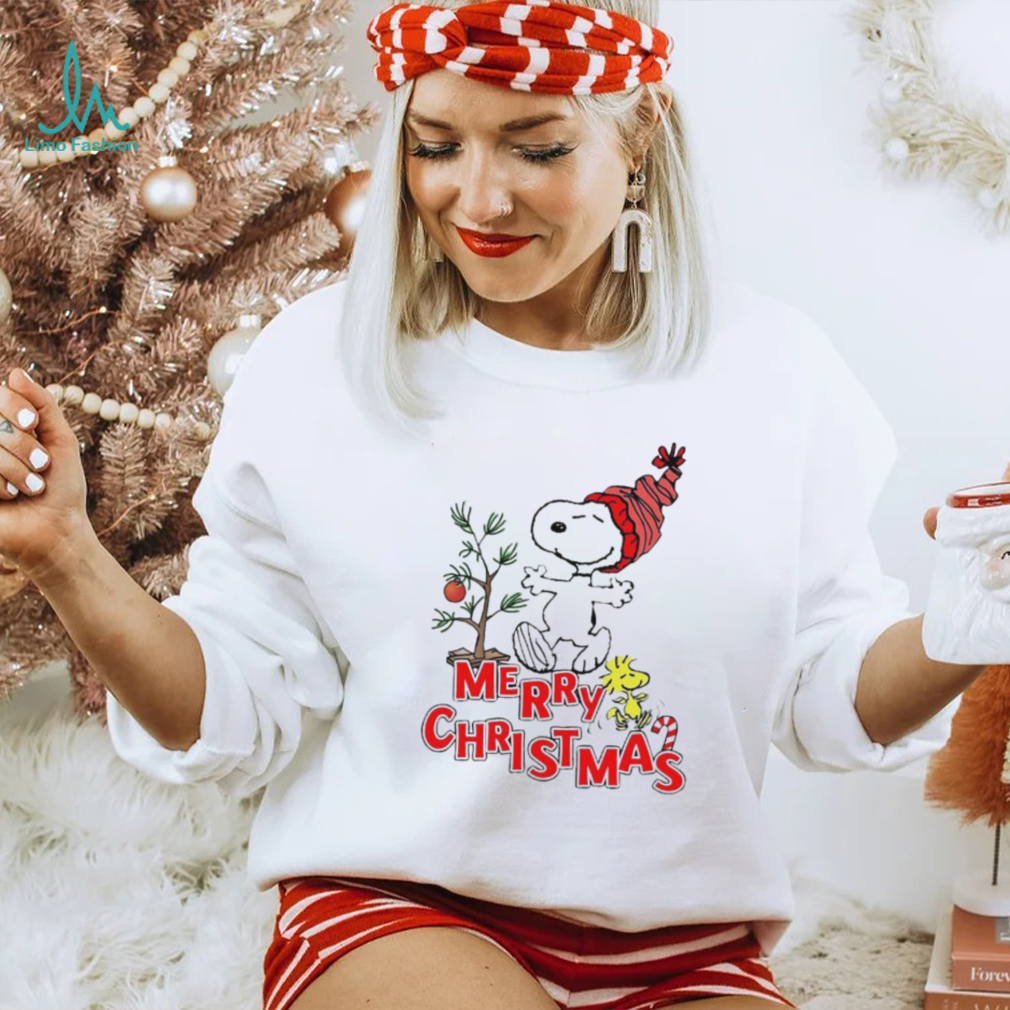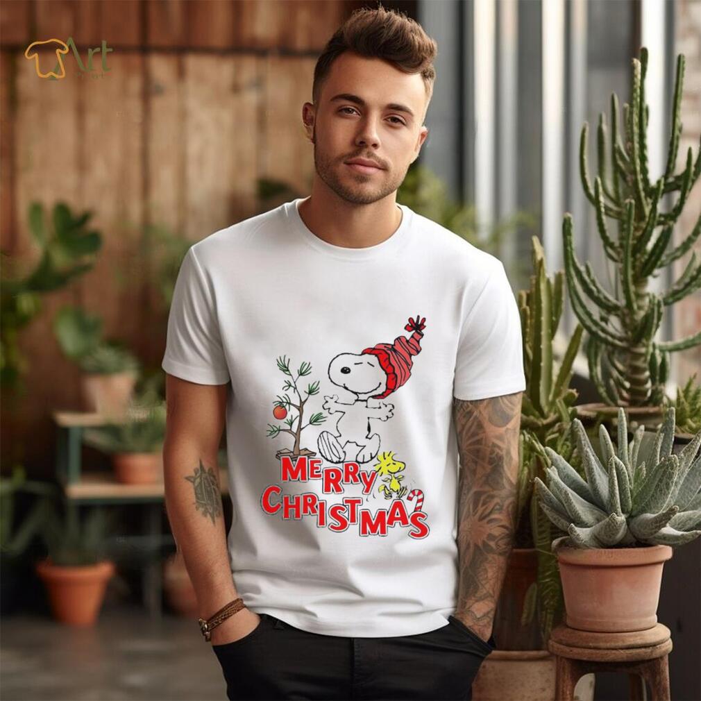Design Snoopy And Woodstock Hat Santa Tree Merry Christmas Shirt