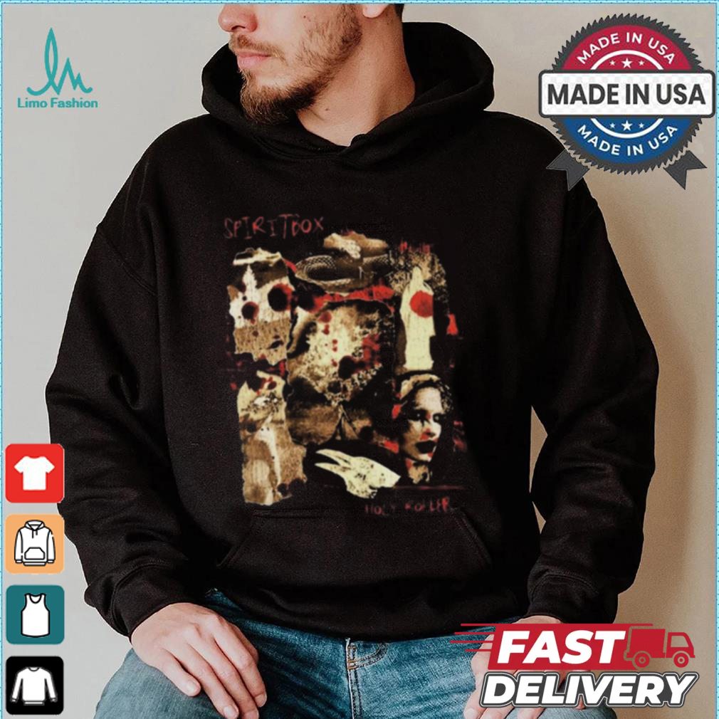 In 1963, I was 12 years old. We lived in South London and were travelling to Norfolk (east of England) for Christmas and New Year. In good weather, and light traffic, the Design Spiritbox Holy Roller Collage Shirt would have been about 4 hours I think. There were no motorways then, and our route took us right through London and then up the A11. It started snowing before we were out of central London and by the time we reached Newmarket which was more than halfway, it was really thick on the road and Dad was getting worried about reaching our destination. We stopped and he went into a pub to phone the friends we were staying with. They said it was not so bad where they were and Dad decided to carry on, but the snow seemed to be following us. I was in the back seat, wrapped in coat and a blanket, Mum was wrapped in travel rugs in the front seat. I don’t recall our arrival, I had been asleep for ages, but I know it took us at least 6 hours probably 7, it was a real nightmare for Dad driving – even though he was very good as he was in the police and had had done an advanced driving course. The whole of the UK had a really cold snowy winter that year. Mum and I stayed on longer in Norfolk, Dad went back to London on the train to go to work and came back to collect us the following weekend.