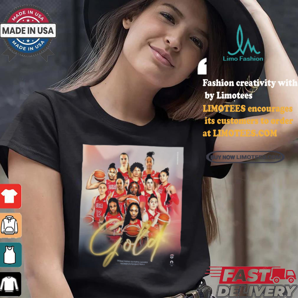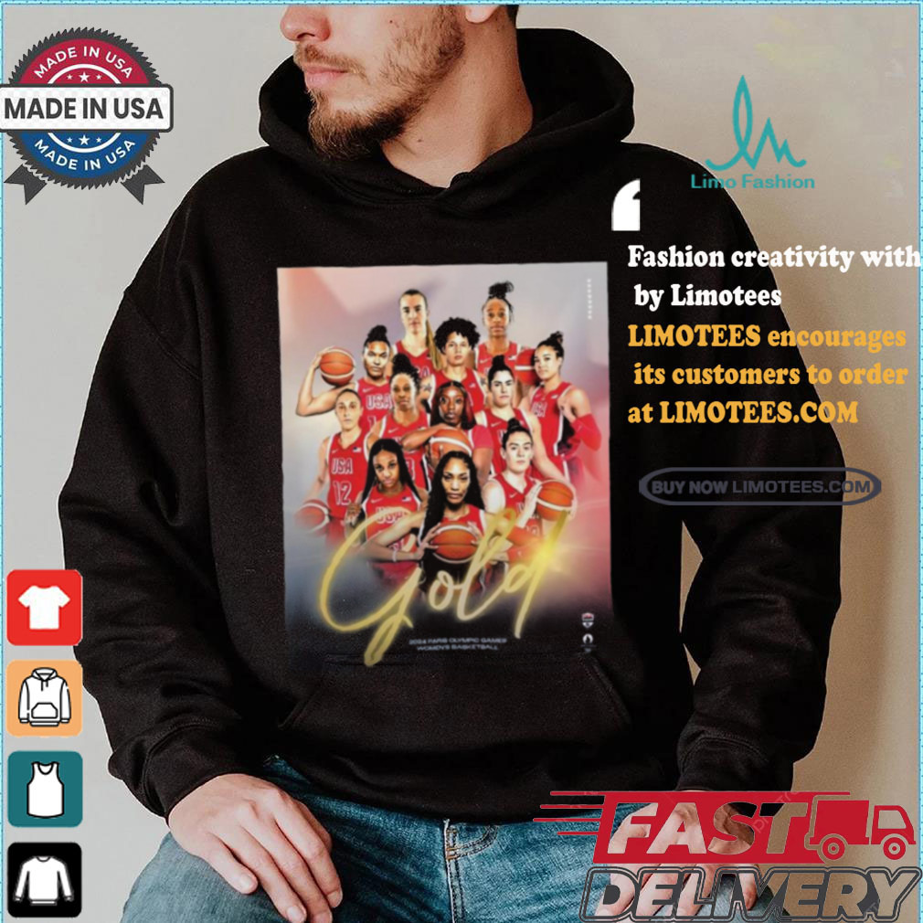 Design Usa Basketball Gold 2024 Paris Olympic Games Women’s Basketball Poster Shirt