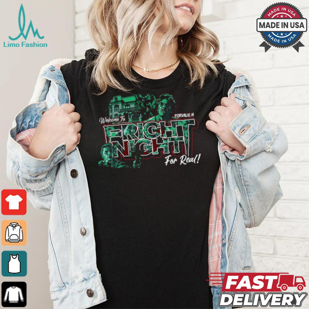 In 1963, I was 12 years old. We lived in South London and were travelling to Norfolk (east of England) for Christmas and New Year. In good weather, and light traffic, the Design Welcome To Fright Night For Real Corvallis, IA shirt would have been about 4 hours I think. There were no motorways then, and our route took us right through London and then up the A11. It started snowing before we were out of central London and by the time we reached Newmarket which was more than halfway, it was really thick on the road and Dad was getting worried about reaching our destination. We stopped and he went into a pub to phone the friends we were staying with. They said it was not so bad where they were and Dad decided to carry on, but the snow seemed to be following us. I was in the back seat, wrapped in coat and a blanket, Mum was wrapped in travel rugs in the front seat. I don’t recall our arrival, I had been asleep for ages, but I know it took us at least 6 hours probably 7, it was a real nightmare for Dad driving – even though he was very good as he was in the police and had had done an advanced driving course. The whole of the UK had a really cold snowy winter that year. Mum and I stayed on longer in Norfolk, Dad went back to London on the train to go to work and came back to collect us the following weekend.
