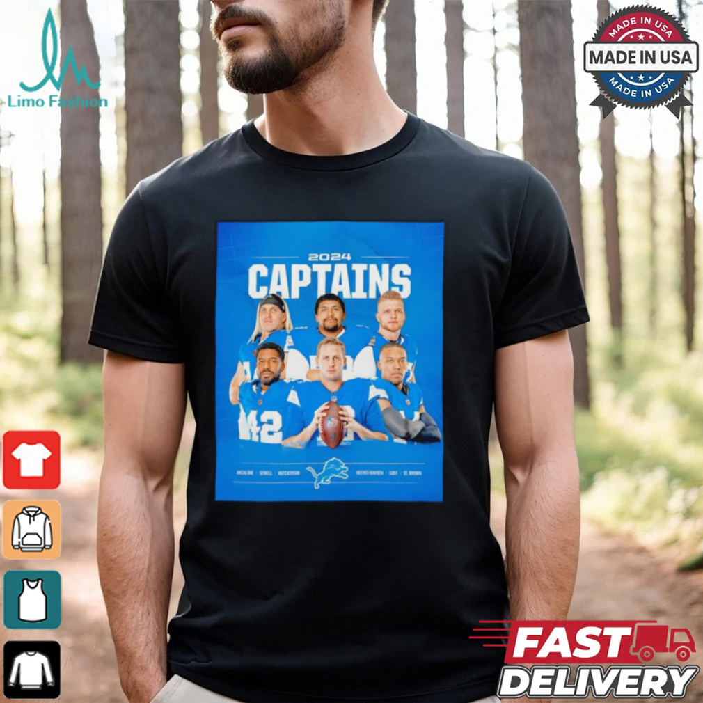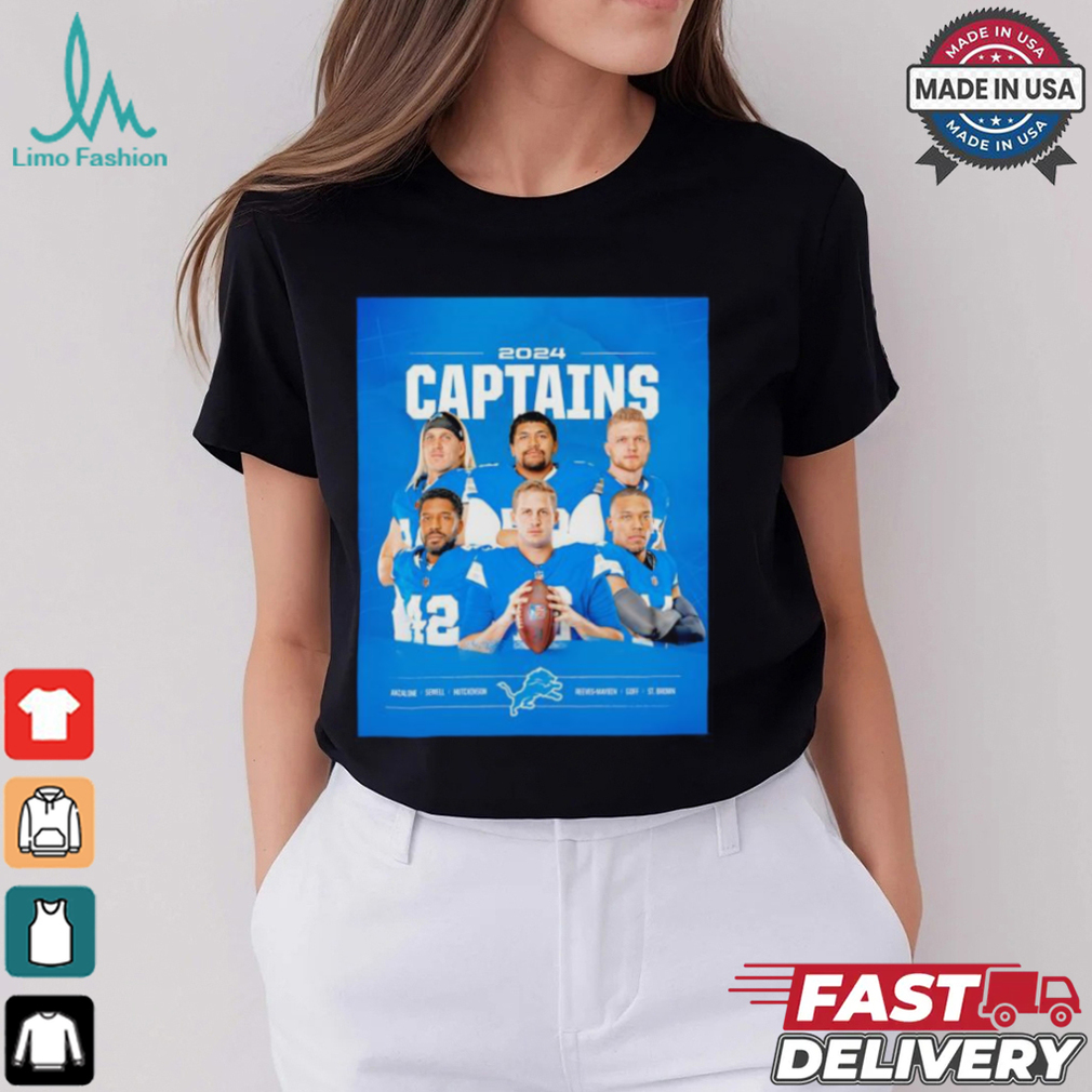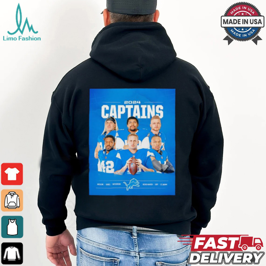 ()Detroit Lions 2024 Captains Anzalone Sewell Hutchinson Reeves Maybin Goff St. Brown shirt hoodie, tank top, sweater and long sleeve t-shirt