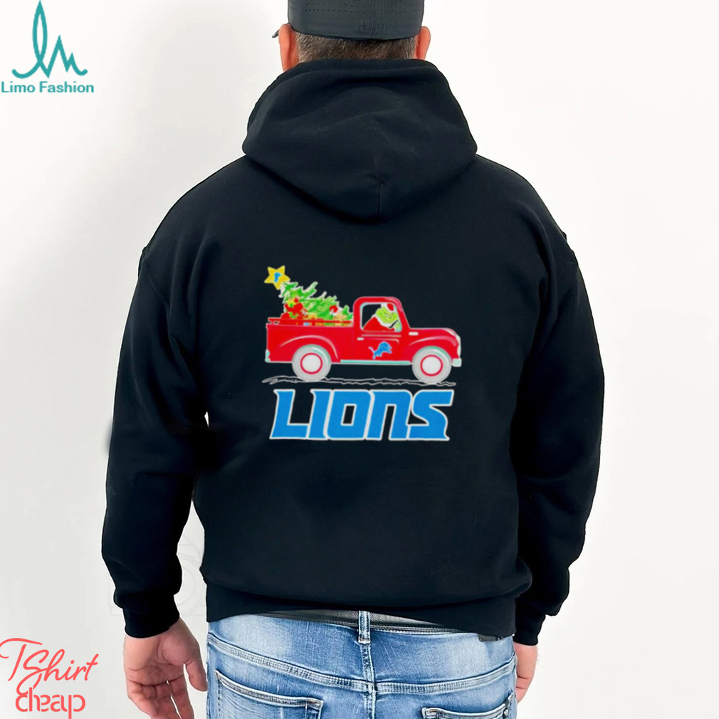 Detroit Lions football NFL Santa Grinch driving Christmas tree Merry Christmas shirt hoodie, tank top, sweater and long sleeve t-shirt