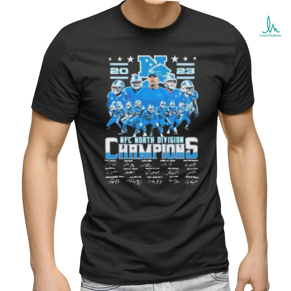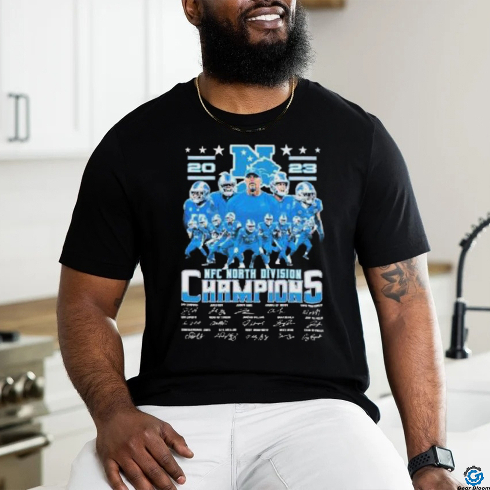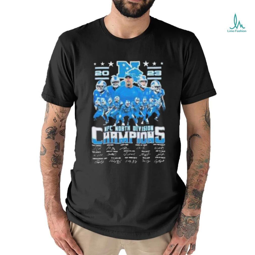 ()Detroit Lions Football Team 2023 Nfc North Division Champions Signatures T Shirt, Hoodie, Sweater, Vneck, Unisex and T-shirt